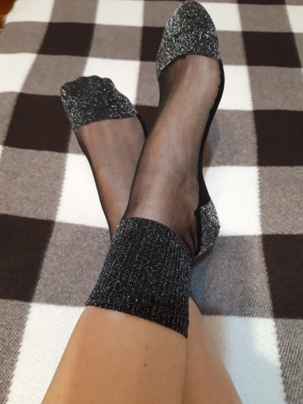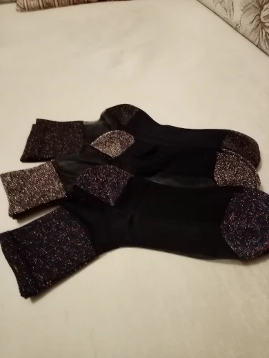 Интересные, тонкие капроновые носочки с люрексом. Смотрятся прикольно.