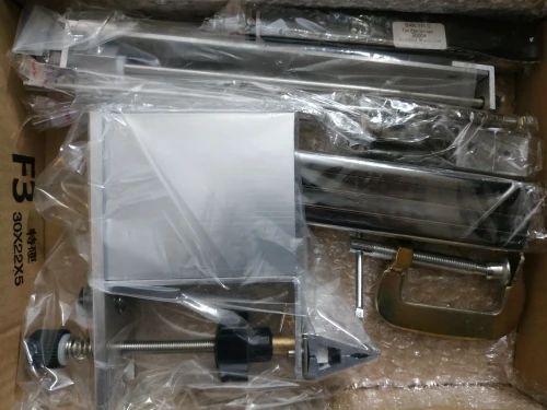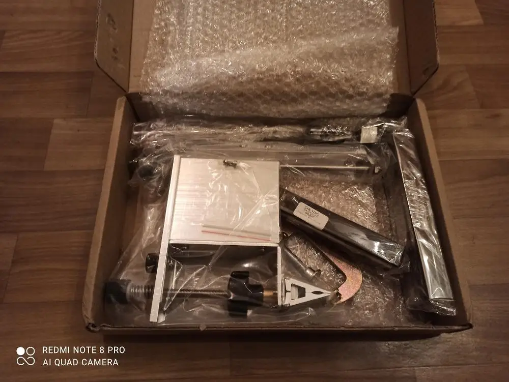 ИзДЭлие... Такое себе, только производины из Поднебесной так косячить умеют. В общем, своих денег явно не стоит. Первое, что бросилось в глаза - всё СИЛЬНО исцарапано. Второе - нет соосности в стыкующихся стержнях ручки (они под углом друг к другу завинчиваются, это полный ППЦ). Третье - несовпадающие отверстия двух винтов, пришлось гравером растачивать одно, чтоб хоть можно было собрать. И последнее - у профилей рез из-под болгарки, никак не обработанный (торчат рваные "заусенцы") - за такие деньги могли бы и фаски хотя бы снять.