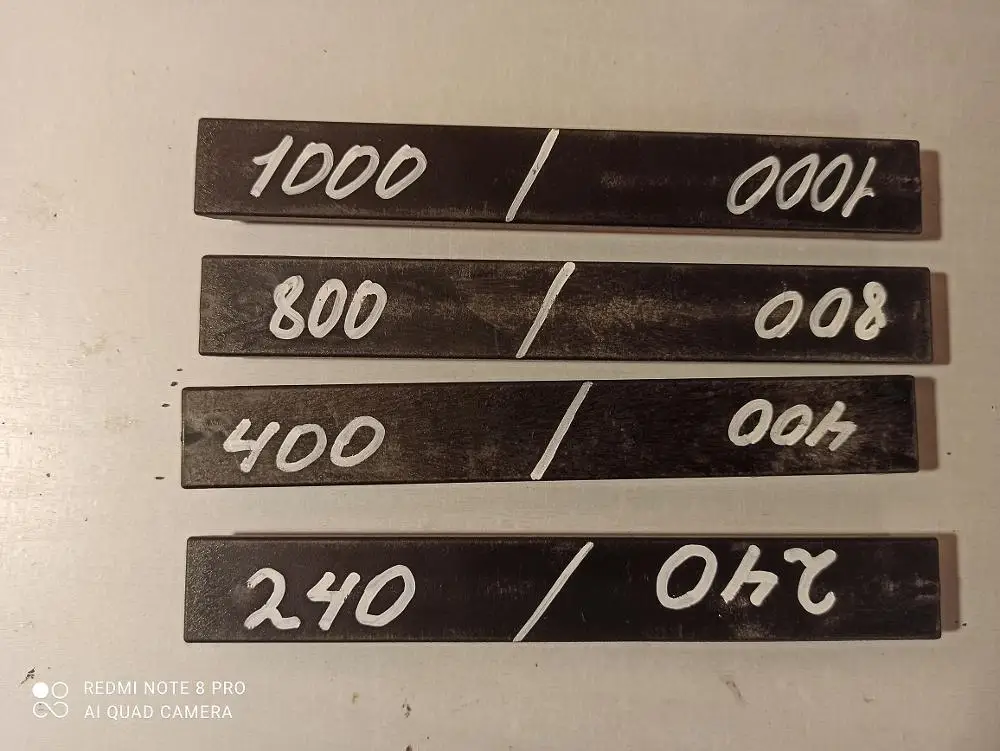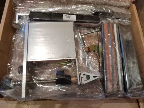 Товар был доставлен быстро (чуть меньше 14 дней). Комплект полностью соответствует изображению товара. Недостаток был у одной из деталей изделия (вторая фотография) - резьба на детали была сделана не до конца, из-за чего собрать изделие полностью было невозможно. Быстрым решением проблемы стало самостоятельная нарезка одного витка резьбы при помощи винта М5(третья фотография) и крестовой отвертки. Сама точилка (и водные камни) очень хорошо точат ножи (пока наточил 3 штуки). Небольшая подсказка - подпишите градацию камня с обратной стороны, чтобы не перепутать.