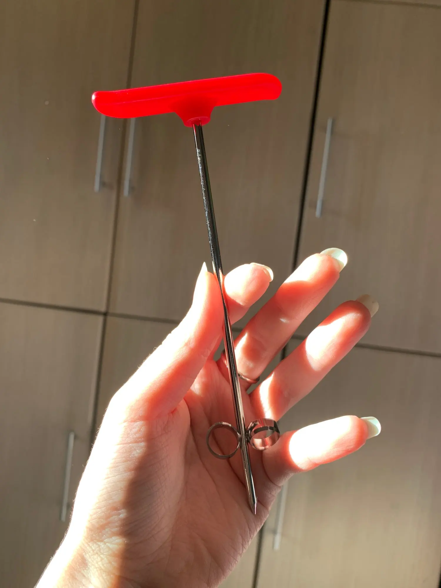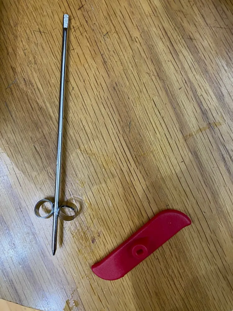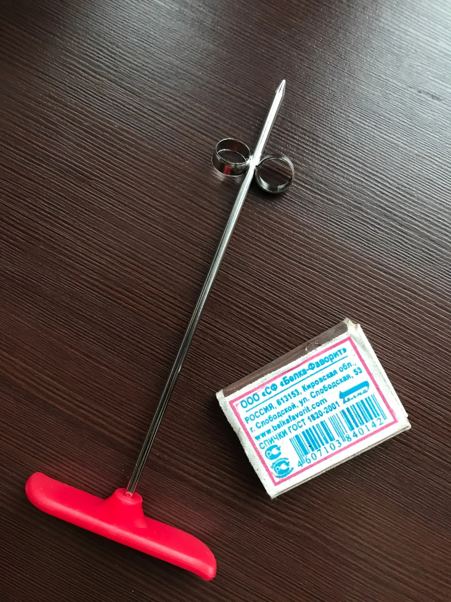 Красная ручка вставляется, не цельная, поэтому не очень удобно, так как обратно выдернуть не получается