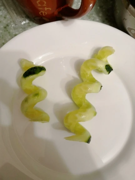 Не поняла пока. Попробовала на марковке, получилось внешне нечто похожее на спиральку, но не таковой не является, полуобрезки какие-то. Может на огурце лучше будет, видно будет.