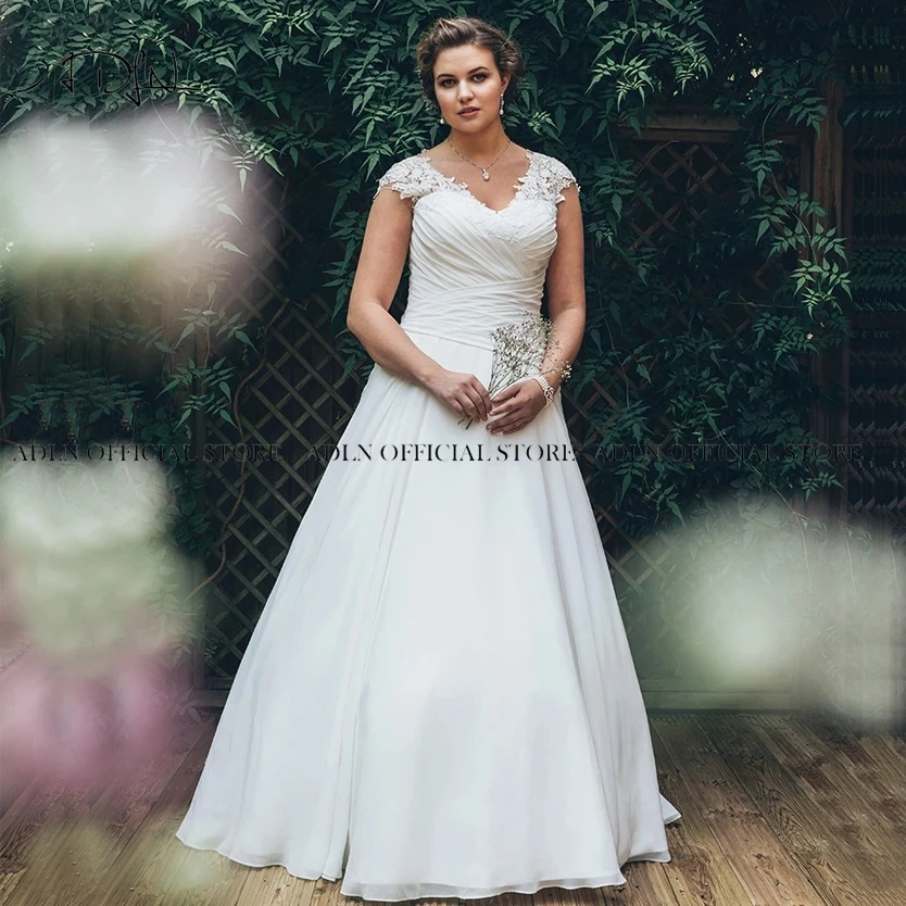 Элегантное размера плюс свадебное платье 2021 шифоновые складки, элегантное платье невесты на заказ с V-образным вырезом, рукавами-крылышками