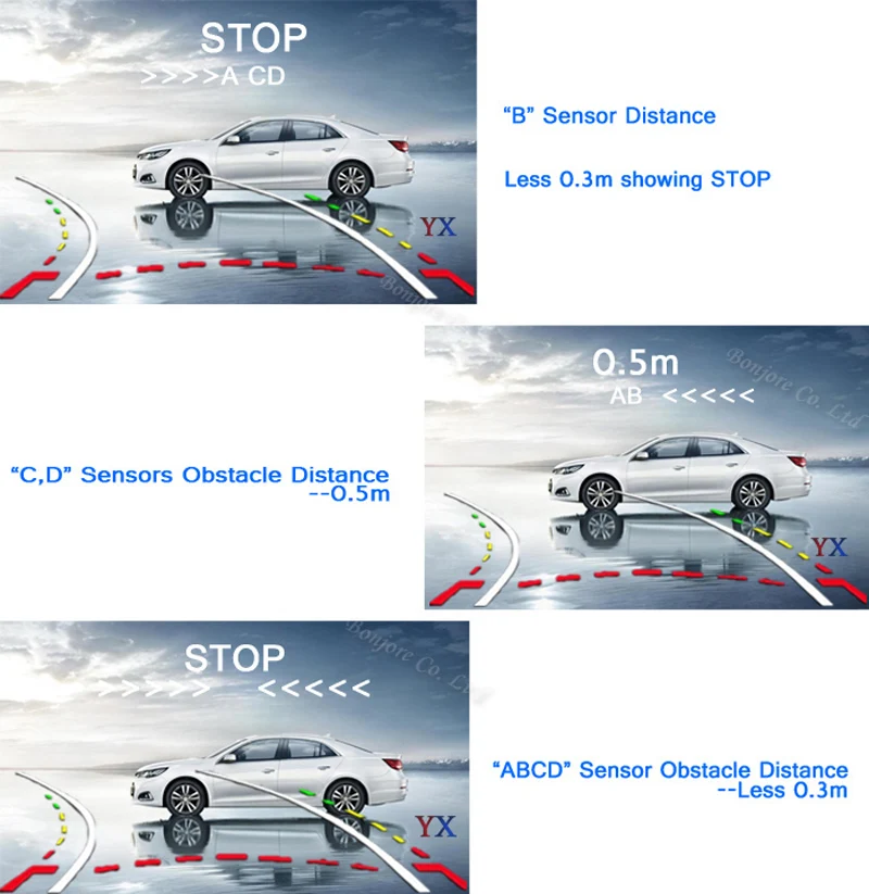 4 датчика двухъядерная Автомобильная камера заднего вида Система помощи при парковке звуковая сигнализация. Изображение заднего вида автомобиля и расстояние могут отображаться на мониторе автомобильного зеркала.