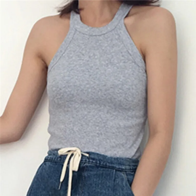 Женский топ с лямкой на шее, с открытыми плечами, без рукавов, базовый однотонный топ, женский тонкий трикотажный топ