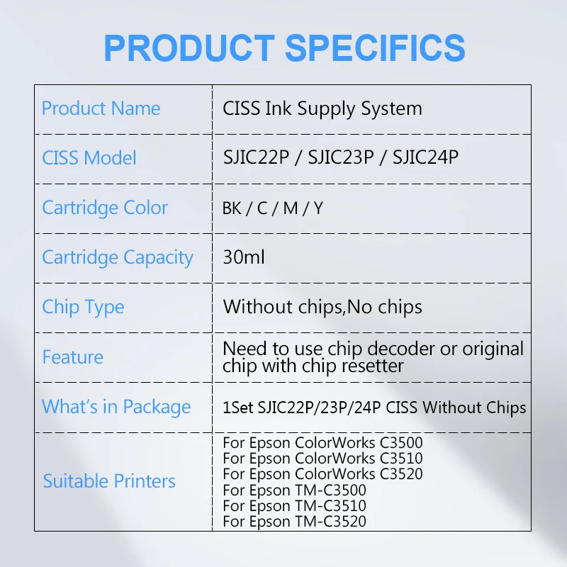Система непрерывной подачи чернил SJIC22P SJIC23P SJIC24P CISS без чипов для Epson C3500 C3510 C3520