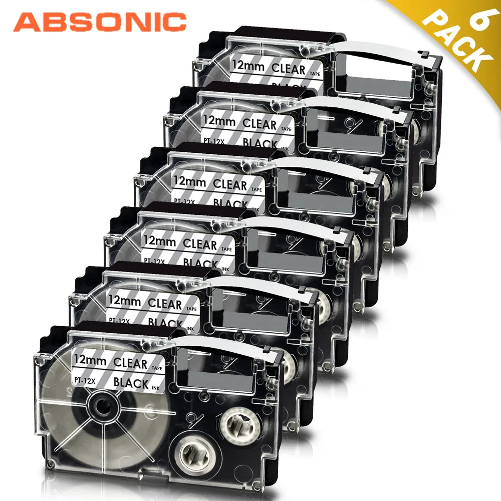 Absonic 6 шт. 12 мм XR-12X для объектива с оптическими зумом Casio запечатанных лент для черный на четкой маркировки, а также картридж XR12X XR 12X работу для объектива с оптическими зумом Casio этикетировщик KL120 60