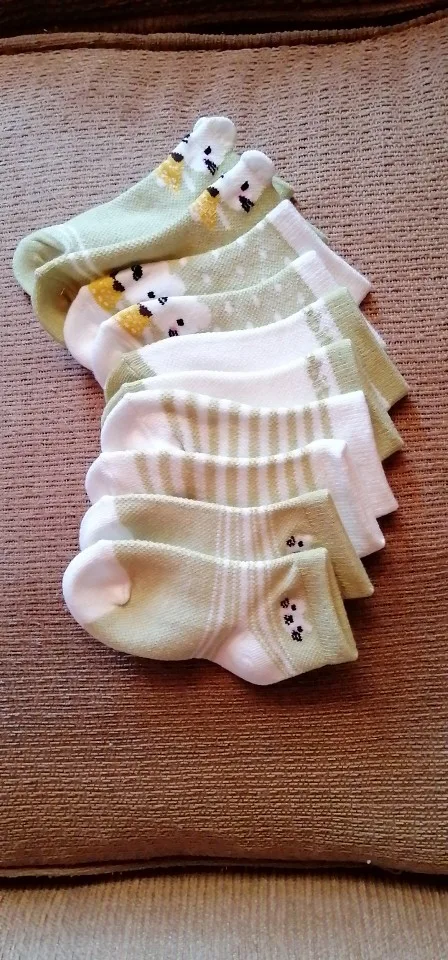 niestety paczka skarpetek była wymieszana. Pisałam po złożeniu zamowienia ze sprzedawcą, który poinformował mnie że nie ma na stanie rozmiaru który mnie interesuje i że muszę poczekać 10 dni lub anulować zamówienie. przedłużyłam czas oczekiwania o 10 dni jednak skarpetki przyszły i tak w różnych rozmiarach. Chcialam najmniejszy rozmiar dla noworodka a dostałam rozmiar (chyba) S - skarpetki wyglądają jak na stopę 2 letniego dziecka... skarpetkiy dwa lata będą teraz niestety leżeć w szufladzie i czekać na swój moment. Zawiodłam się, tym bardziej że poświęciłam czas, o który prosił sprzedawca, a także czas na rozmowę o tym i poniekąd pieniądze bo skarpetki dla noworodka i tak muszę dokupić.