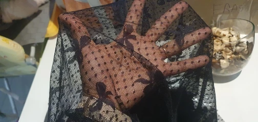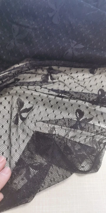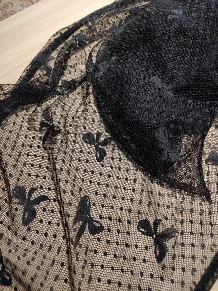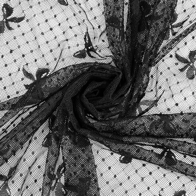 Сетчатая Тюлевая ткань с бантом, эластичная черная кружевная ткань для мини-платья и нижнего белья, 0,5 ярдовшт, TJ0305