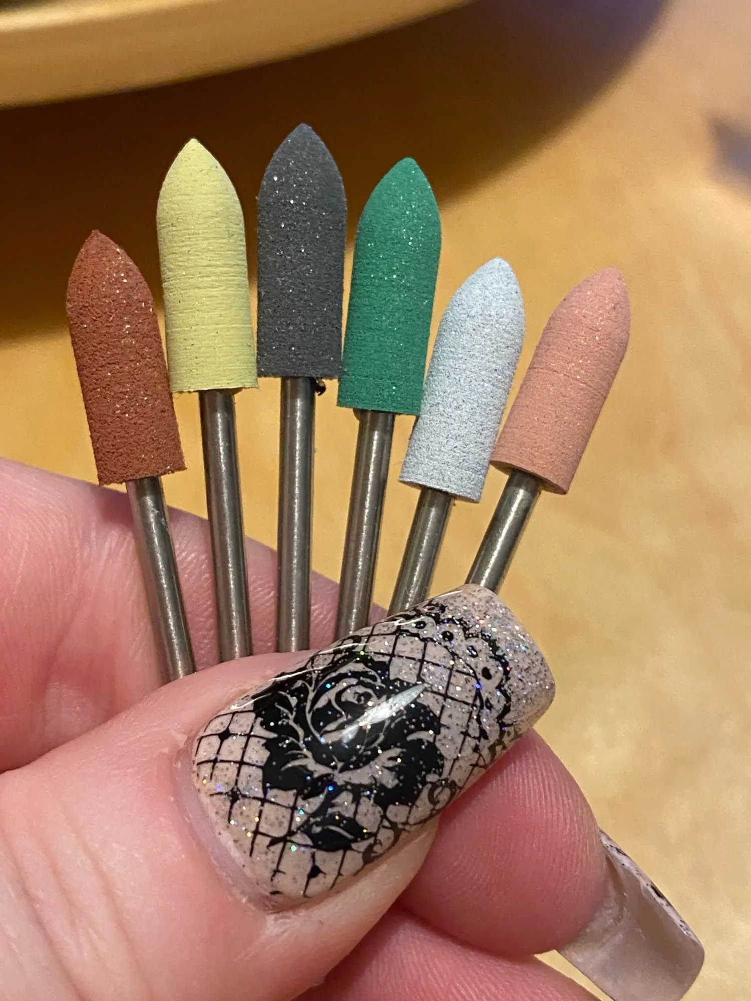 Я не знаю, какие эти сверла сделаны, но мой взгляд не является резиновым или силиконовым, потому что при использовании kruzzą очень мягкие и части из них odpadajaj, даже перед использованием odlamaly вибро с сверлами, и при использовании на гвоздях zostawalar цвет порошка. Для того, чтобы сделать фотографии przeze me, тщательно видно, какие образные пазы на сверле после использования только для одного ногтя.