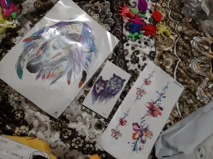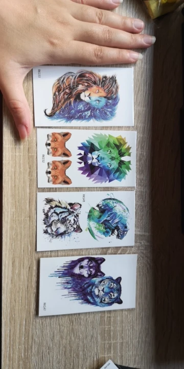 Классные тату, долго держится, выглядит правдоподобно. Спасибо Вам и отправили вместе с другими товарами, всё пришло очень быстро❤️