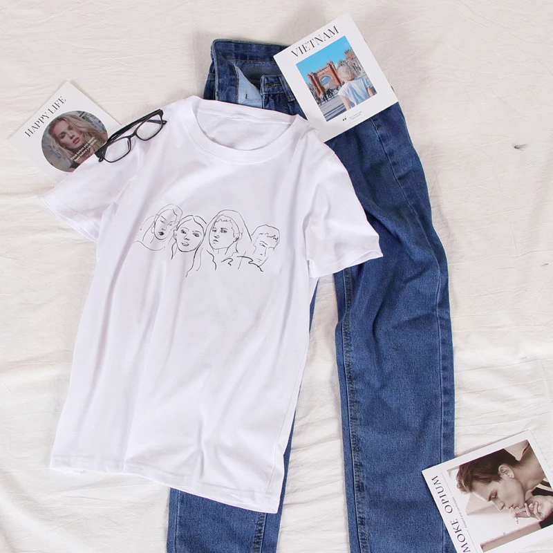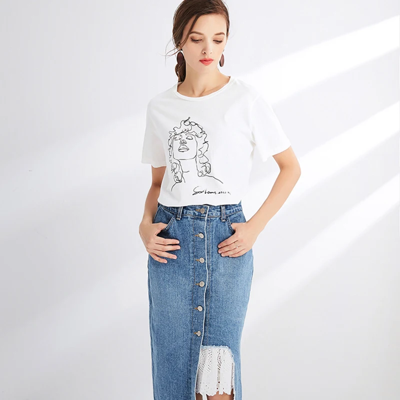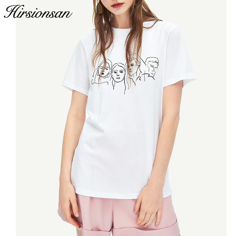 Футболка Hirsionsan женская с абстрактным принтом, хлопковая рубашка с круглым вырезом и принтом в стиле 90-х, с коротким рукавом, лето 2019