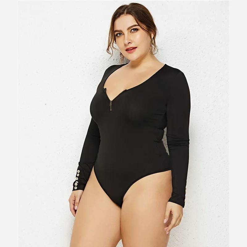 Женский пикантный купальник большого размера облегающий боди комбинезон топы с длинным рукавом открытый комбинезон на молнии Комбинезоны для леди 5XL 6XL 2022