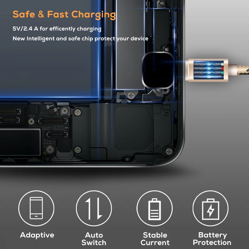 Features 35V 2.4A Fast Charging and Data Sync Transmission
