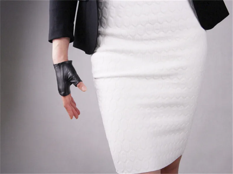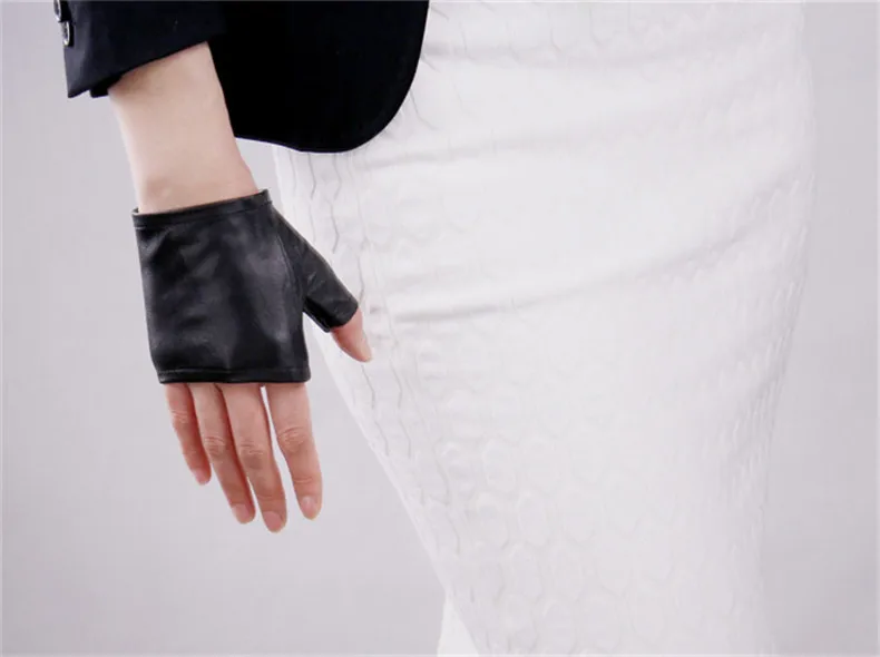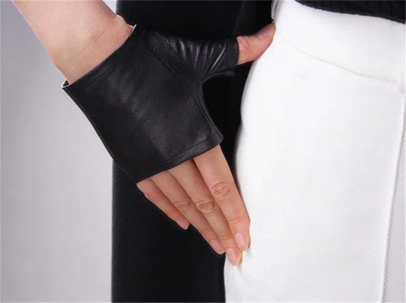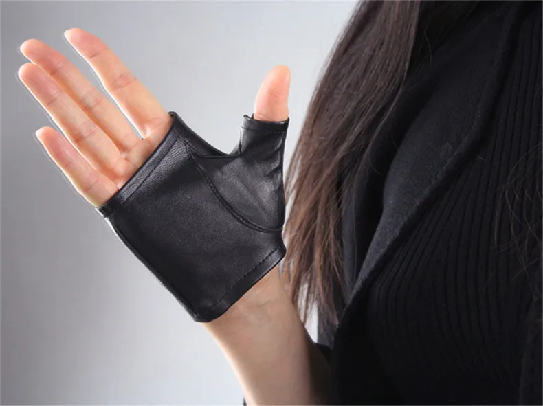 Женские перчатки без пальцев, из натуральной кожи, с полупальцами