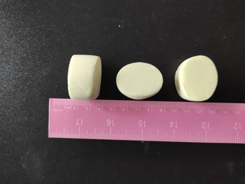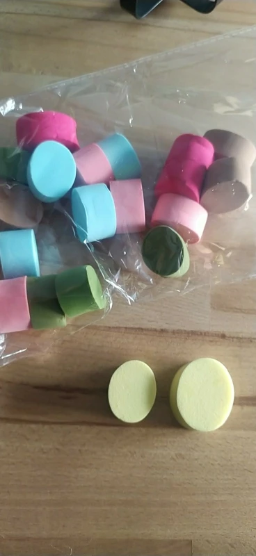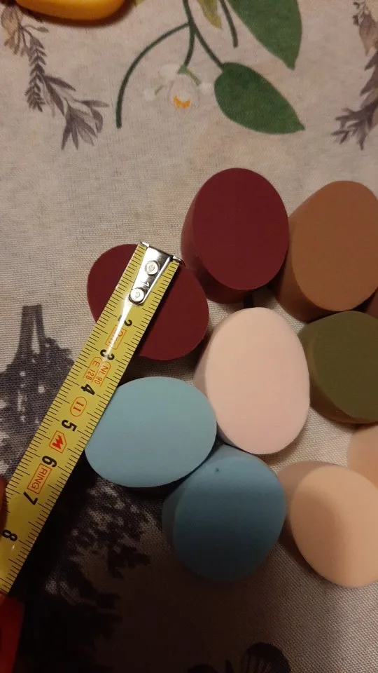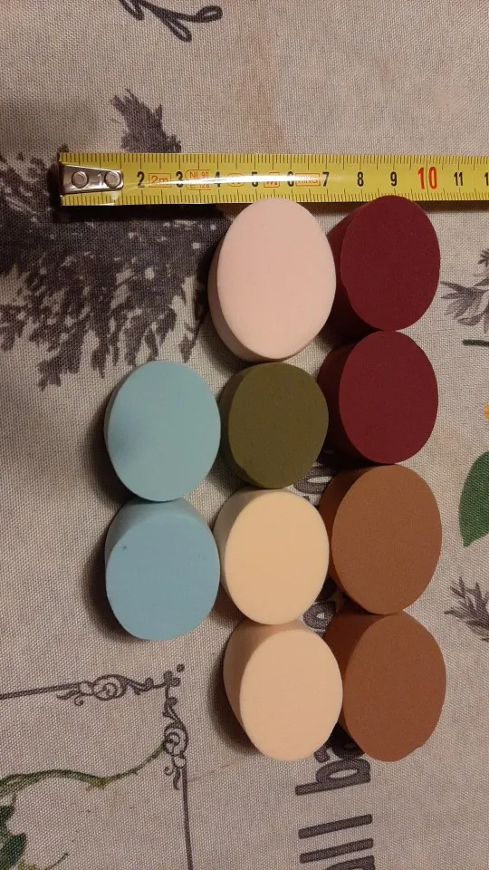 описание не совсем точное, так как заказали 10 штук и пришли спонжи не одного а 3х размеров: 4*3, 3.5*2 5 и ы2.5*2.5 см. Сами по себе довольно таки мягкие и при контакте с водой действительно хорошо увеличиваются в размере, становятся ещё мягче, на фото в бордовом цвете 1н сухой и 1н размоченный - хорошо видно разницу. Товар пришел вовремя! В принципе покупкой довольна, но в работе пока не опробовала.
