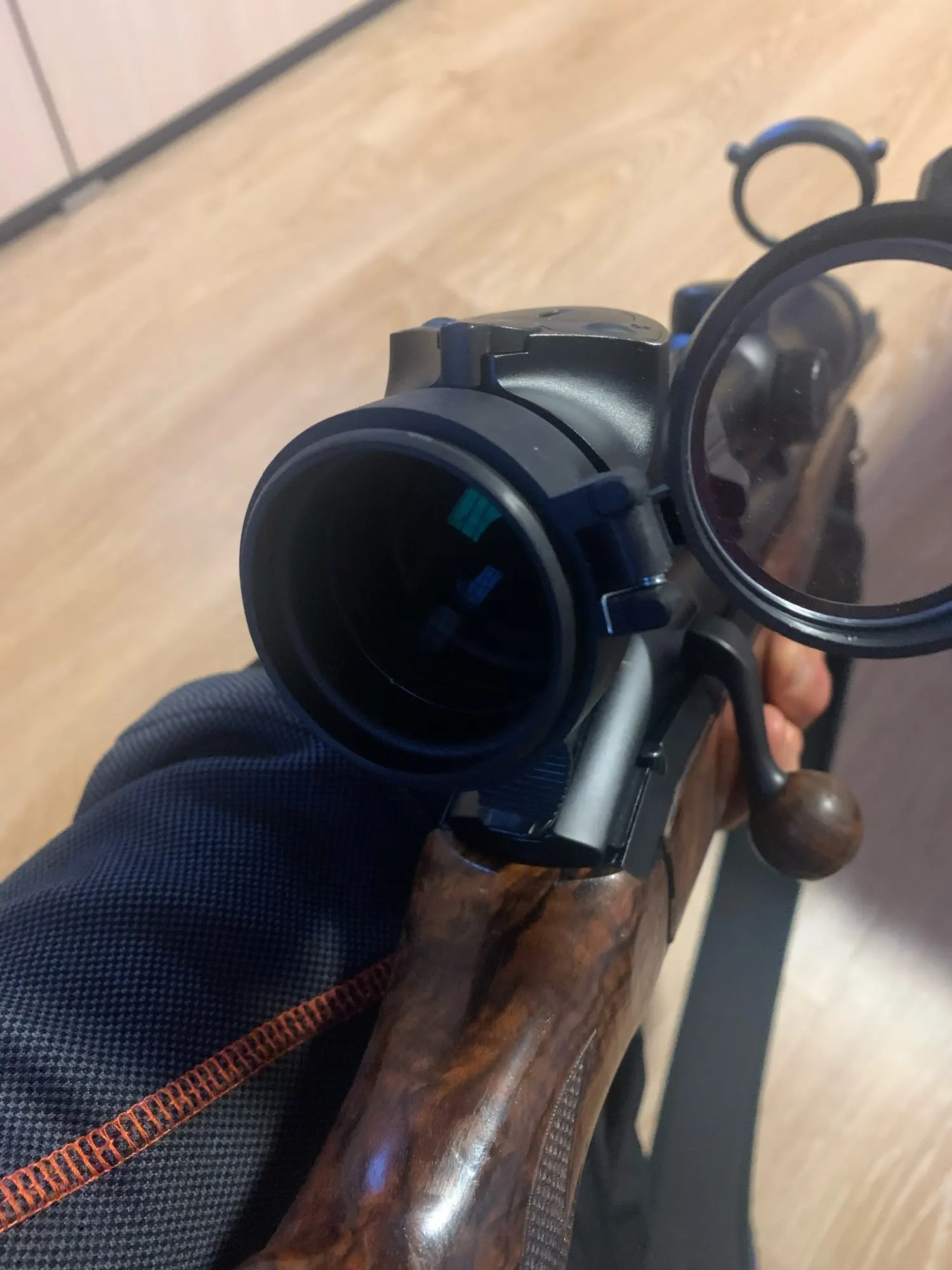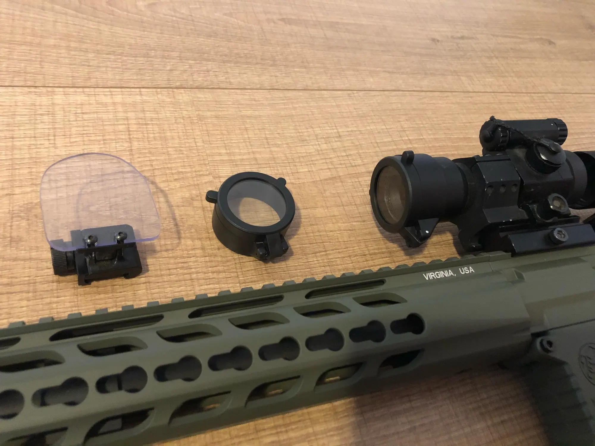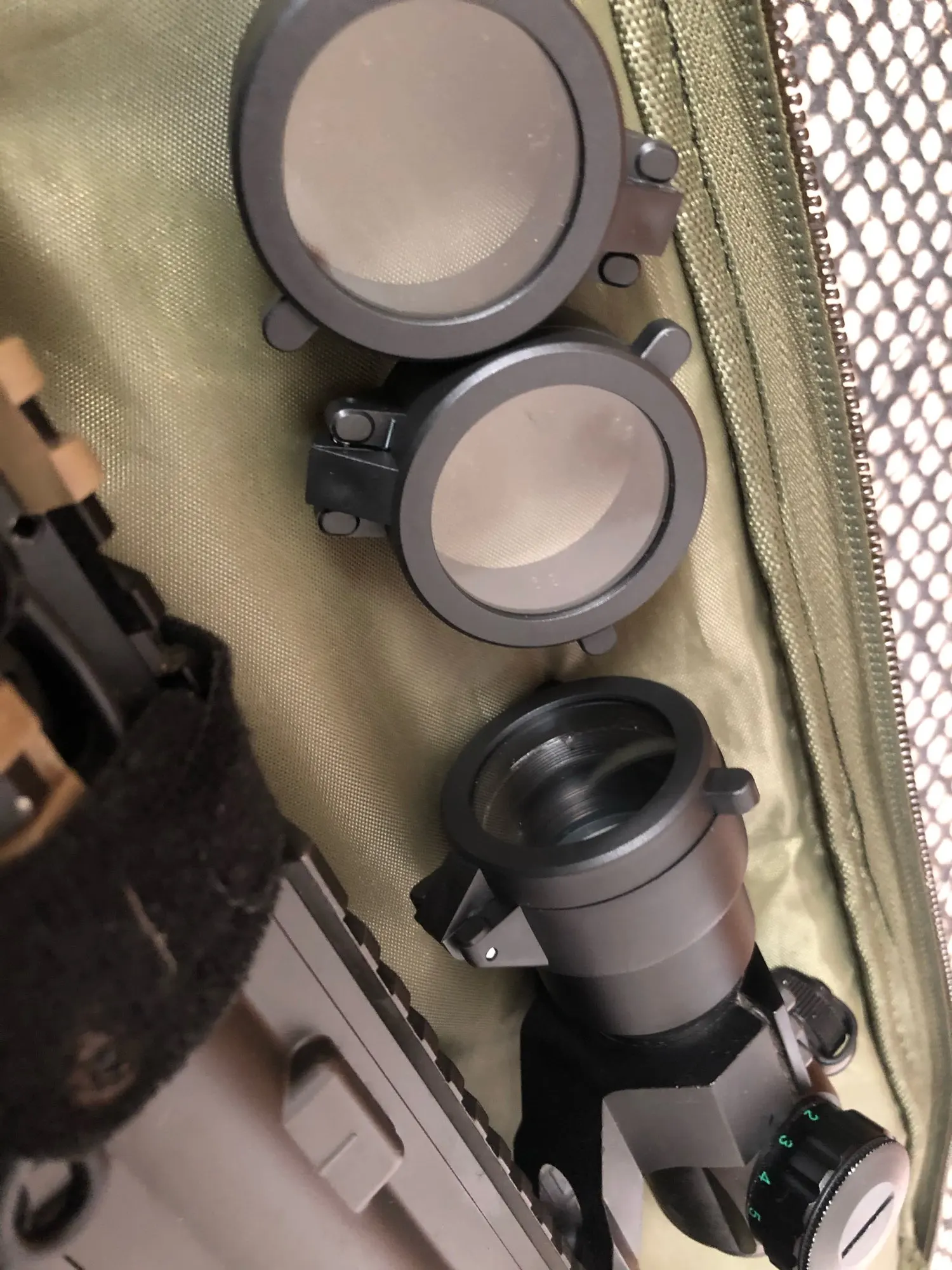 Доставка в ЛО около месяца. Конкретно эту брал не себе, мои сели на прицел отлично - пластик достаточно прозрачный, всё видно не открывая.