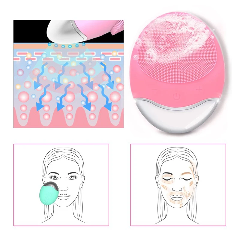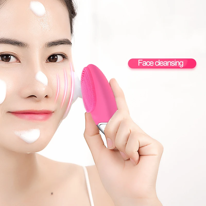Электрическая ультразвуковая силиконовая щетка для чистки лица, Электрический ультразвуковой вибрирующий массажер для лица, миниатюрная Глубокая очистка пор