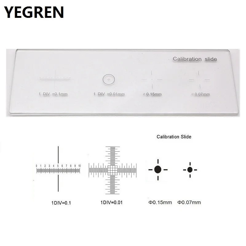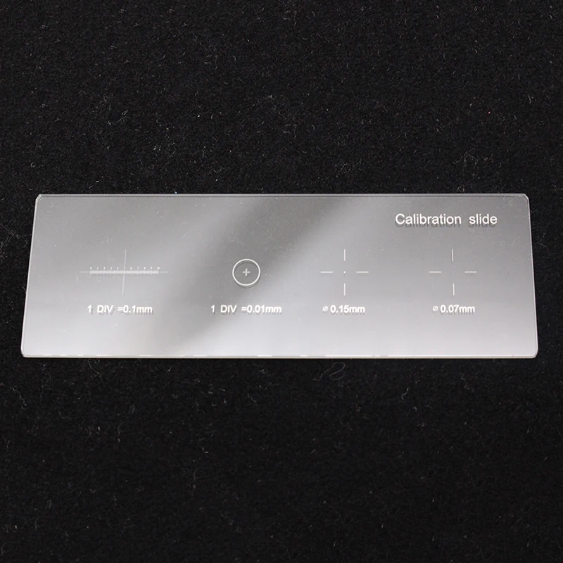 Нанесенными плюсиками; В DIV = 0,01 мм Микрометр калибровки линейка-слайд с 4 измерений для стерео Биологический микроскоп Параметры Размер: 25 мм x 75 ммМатериал: оптическое стеклоМикроскоп: стерео микроскоп или Биологический микроскоп1 DIV = 0,010,15 мм диаметр в горошек0,07 мм Диаметр точки