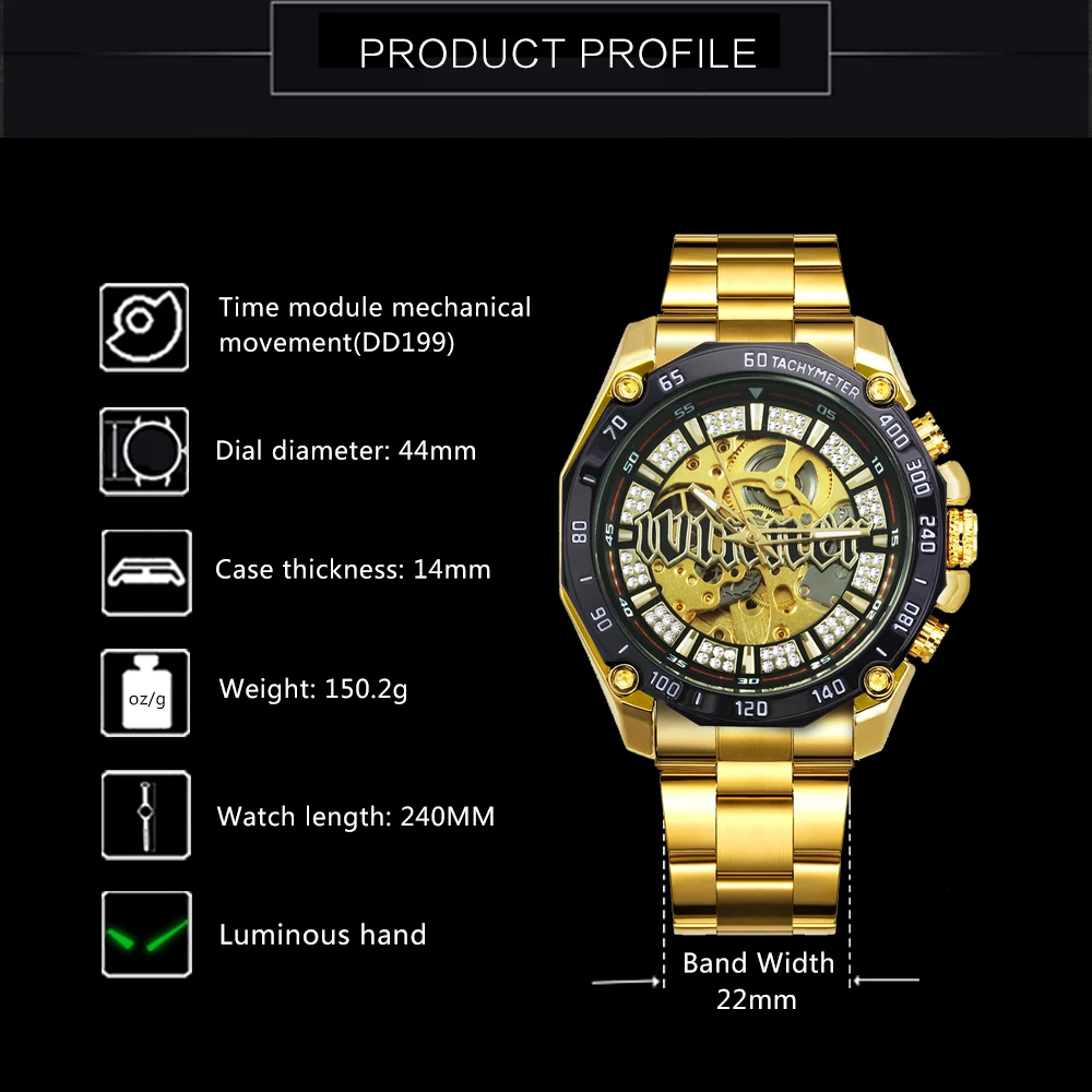 Часы мужские механические в стиле панк, с автоподзаводом и стальным ремешком