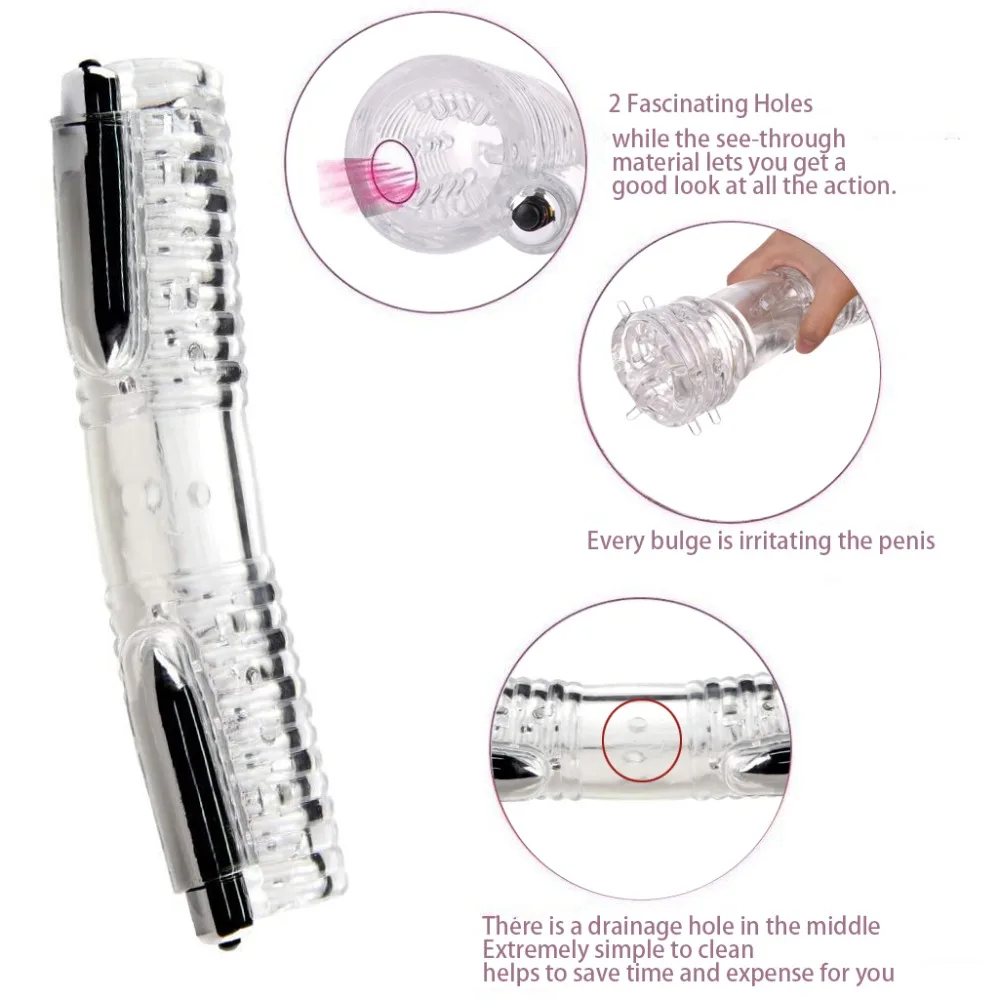 Массажер для пениса для взрослых с 2 колпачками мужской мастурбатор для геев