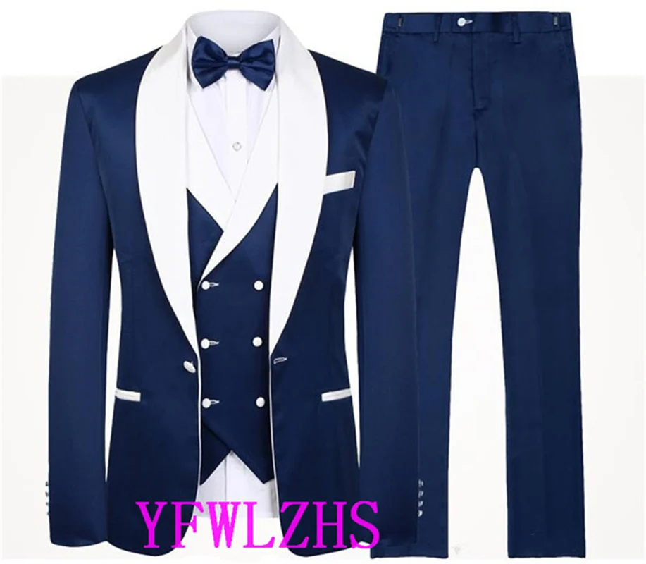 Двубортные мужские костюмы, белые смокинги для жениха, шаль, атласн...