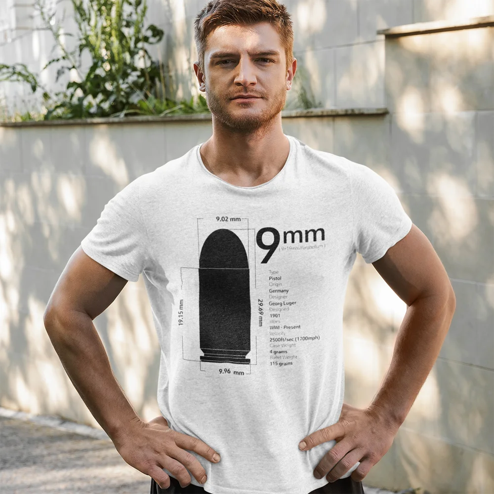 Футболка Luger с рисунком в виде тяжелых пуль, 9 мм, Мужская футболка с принтом, Потрясающая Летняя футболка из 100 хлопка с короткими рукавами