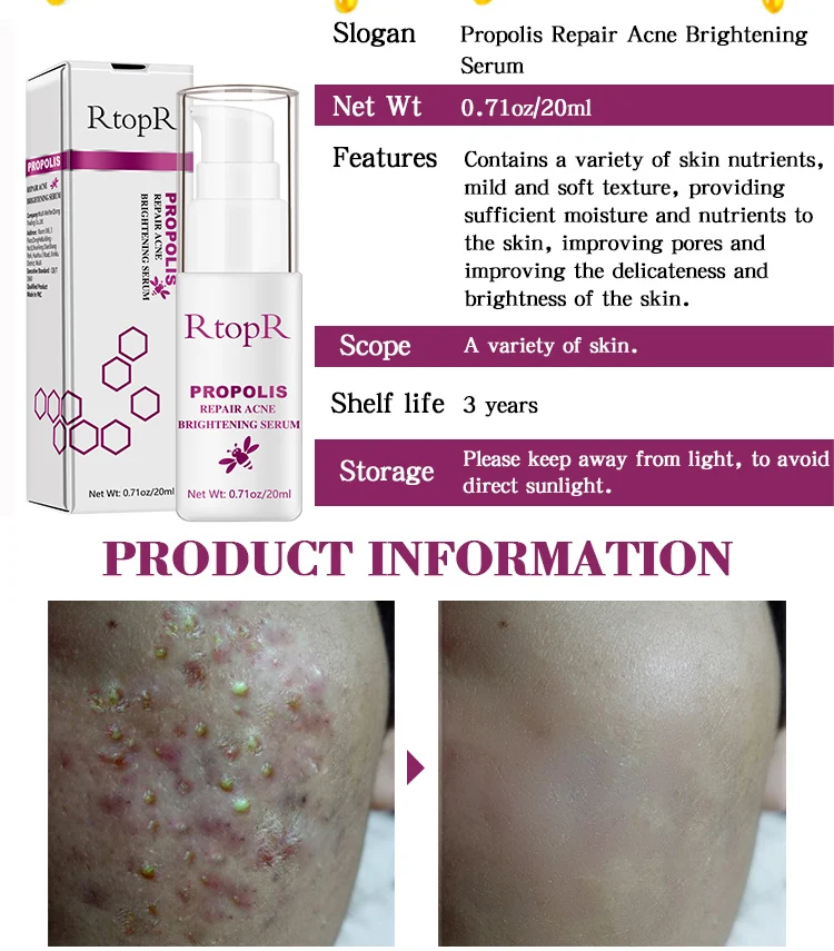 Осветляющая сыворотка RtopR с прополисом для восстановления акне, сыворотка для устранения рубцов после акне, очищающая Сыворотка для сужения пор, устраняет акне, контроль жирности кожи