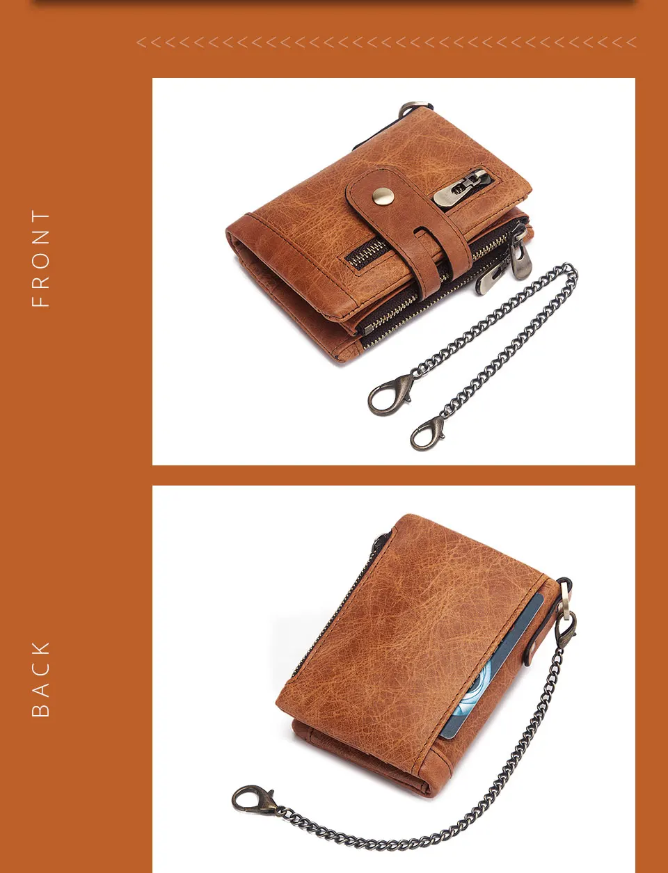 Кошелек мужской из натуральной кожи, с RFID-защитой и двойной молнией
