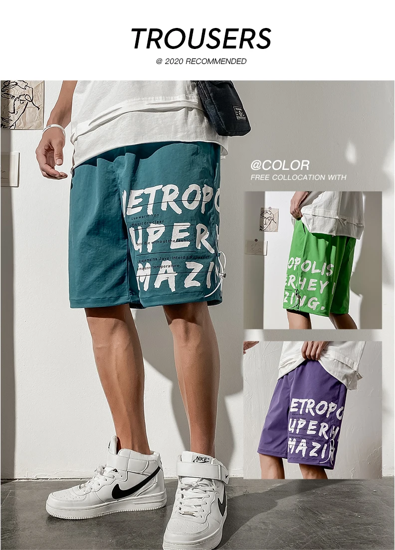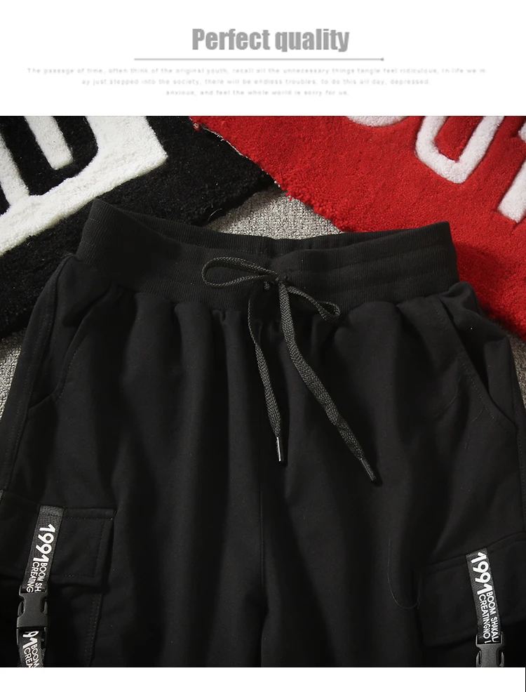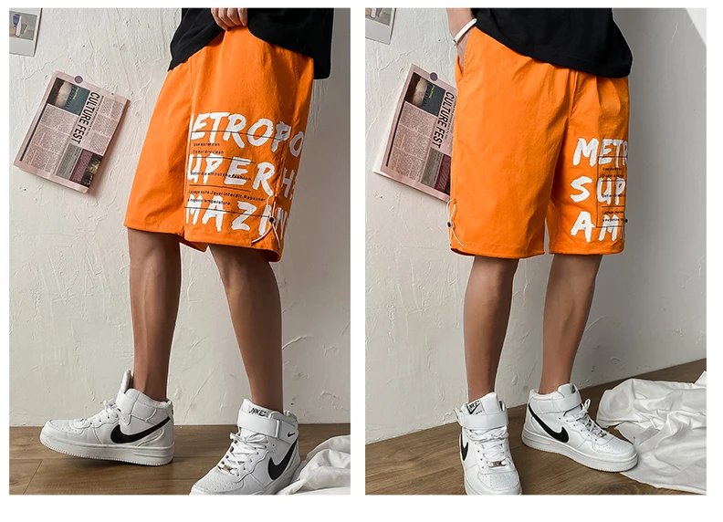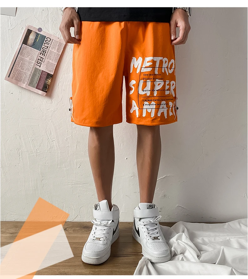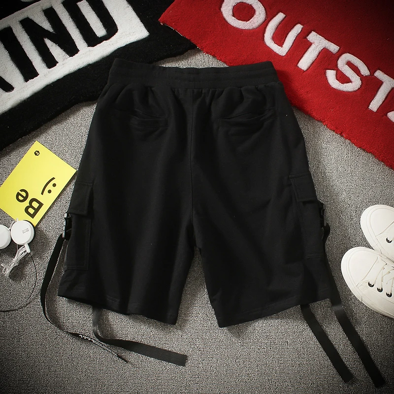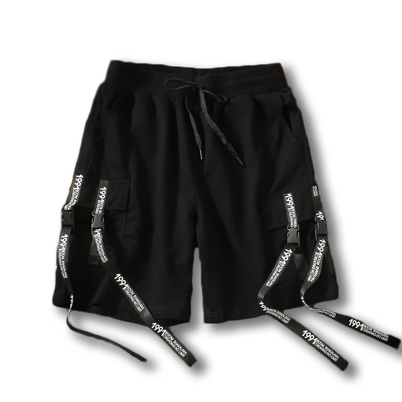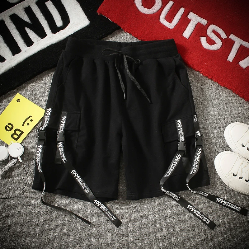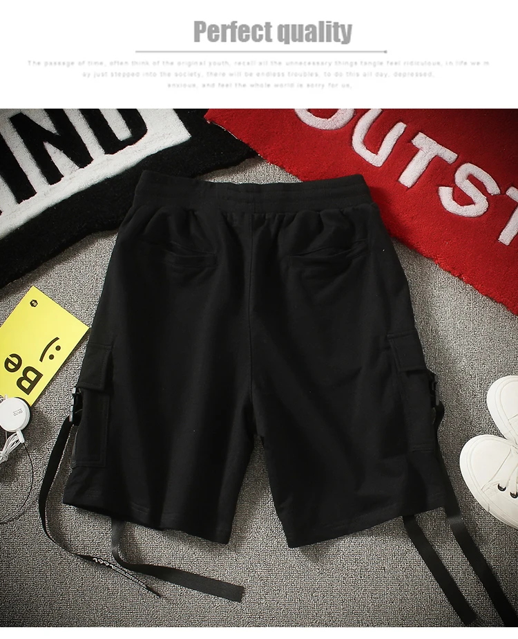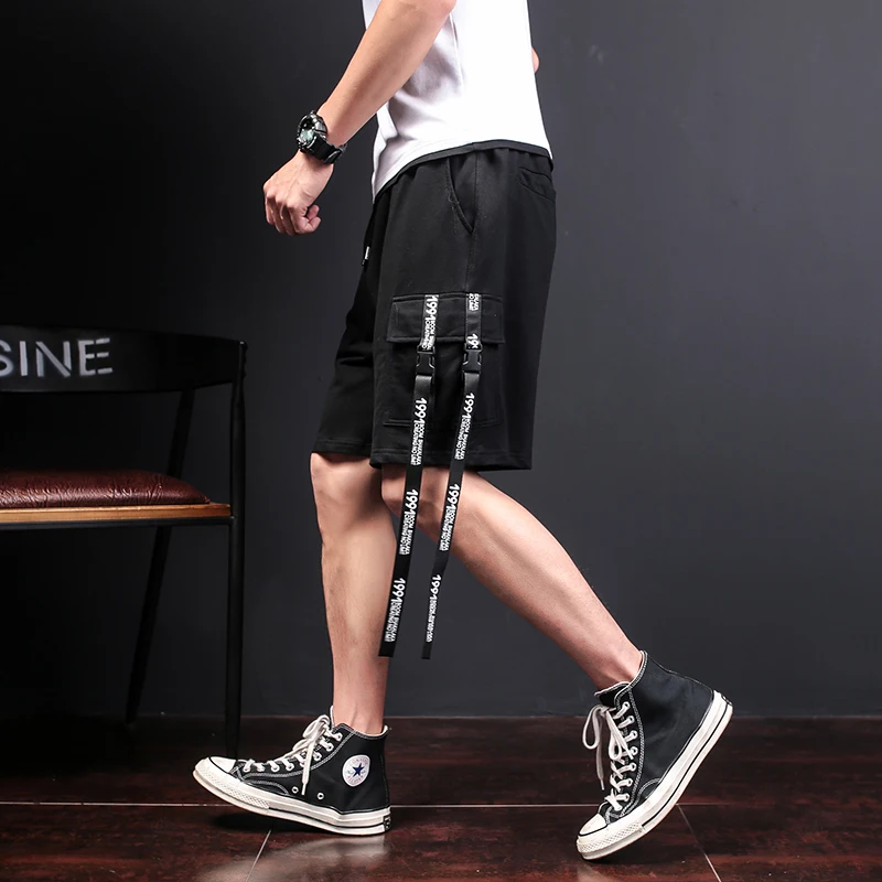 Шорты мужские с эластичной резинкой на талии, летние шаровары в стиле хип-хоп, с карманами, уличная одежда в стиле Харадзюку, черные, ABZ211, 2022