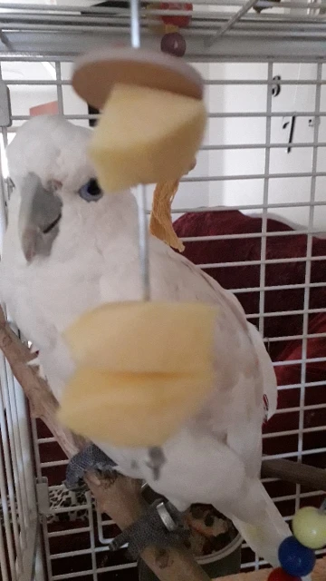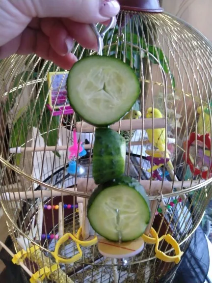 Для волнистых сложновато его ловить,он раскачивается. Но что именно не понравилось, - провесев яблоко на нём пару дней,-метал окислился(почернел). я убрала у своих. пустая трата денег.