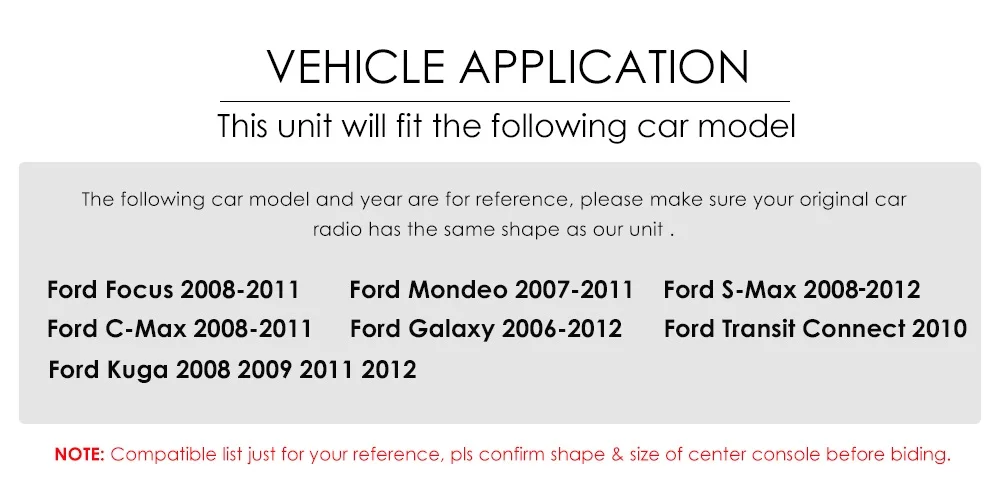 Пожалуйста, проверьте свой оригинальный размер и внешний вид автомобиля, прежде чем сделать заказ, чтобы избежать ошибки.