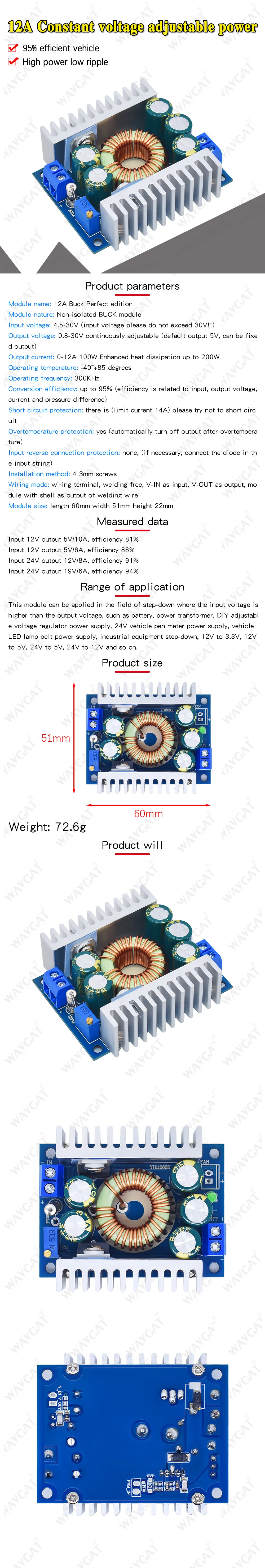 Модуль питания 100 Вт, 5-40 В, 12 А, DC-DC, высокая мощность, низкая пульсация, Регулируемый понижающий модуль, 95% эффективный модуль питания автомобиля от 1224 В до 3,3 В512 В