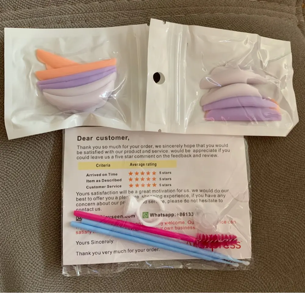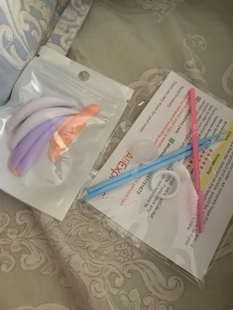 Как показано на фото, 3 типа кривых приходят в зависимости от того, как вы хотите оставить закладку. Единственное, что мне не понравилось, это то, что мне нужно больше клея, чтобы прикрепить ресницы к силикону, а затем это более громоздко, чтобы удалить клей с вкладки.