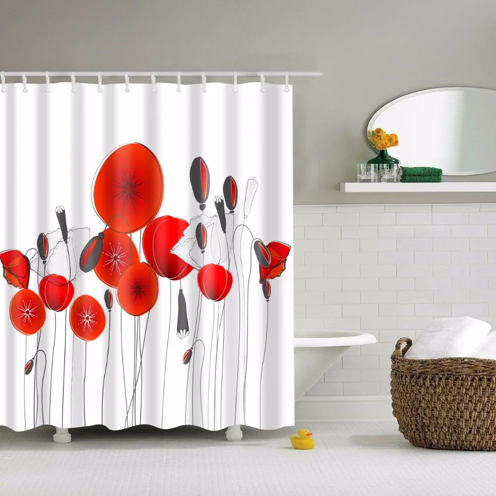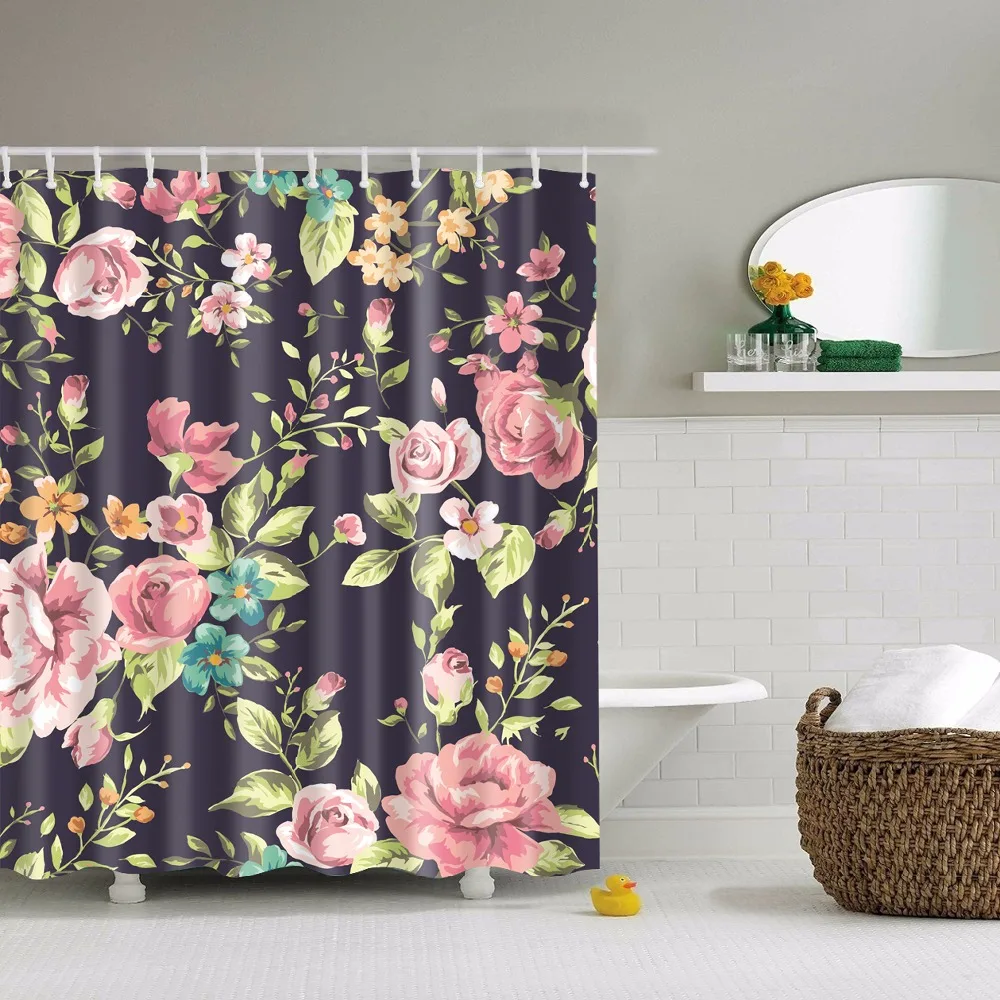 Занавеска для душа 180x180, водонепроницаемая занавеска из полиэстера с красивыми красными розами, цветами персика, хризантемами и крючками