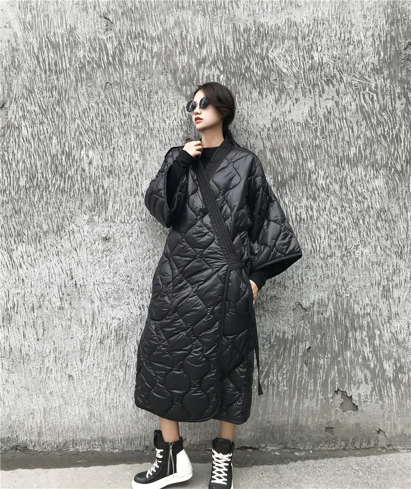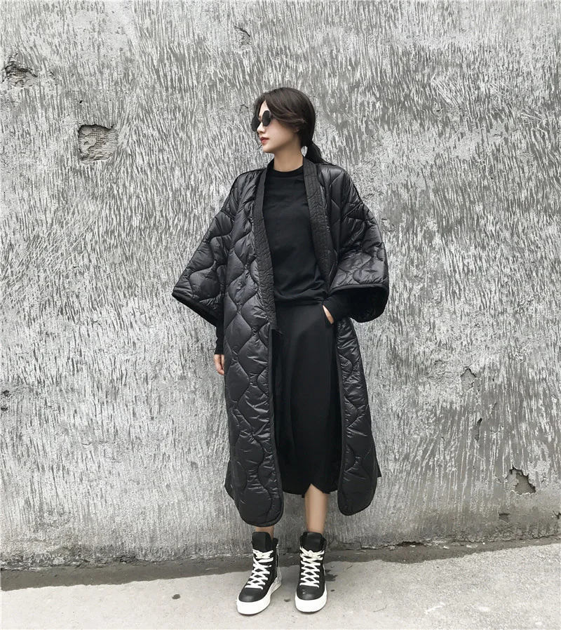 LANMREM 2022 новое осеннее и зимнее японское стильное Свободное пальто с рукавами летучая мышь большого размера с хлопковой подкладкой Женская ветровка JD18601