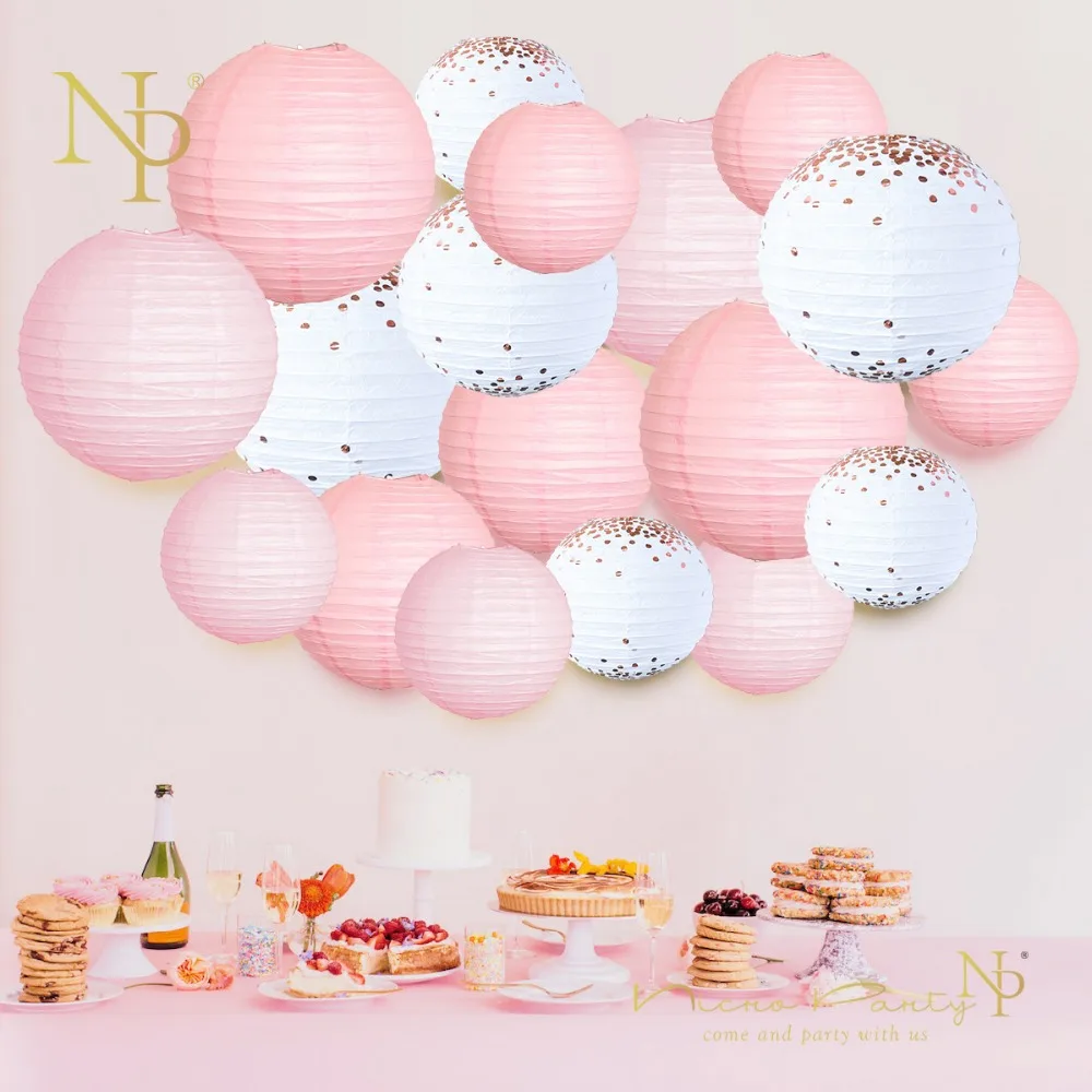 Bыбрать отправку из Испании или Бельгии, Nicro 18 шт.компл. розовое золото Медь Фольга Бумага Фонари висит ко Дню Святого Валентина свадьбы детского дня рождения вечерние украшения # Set84