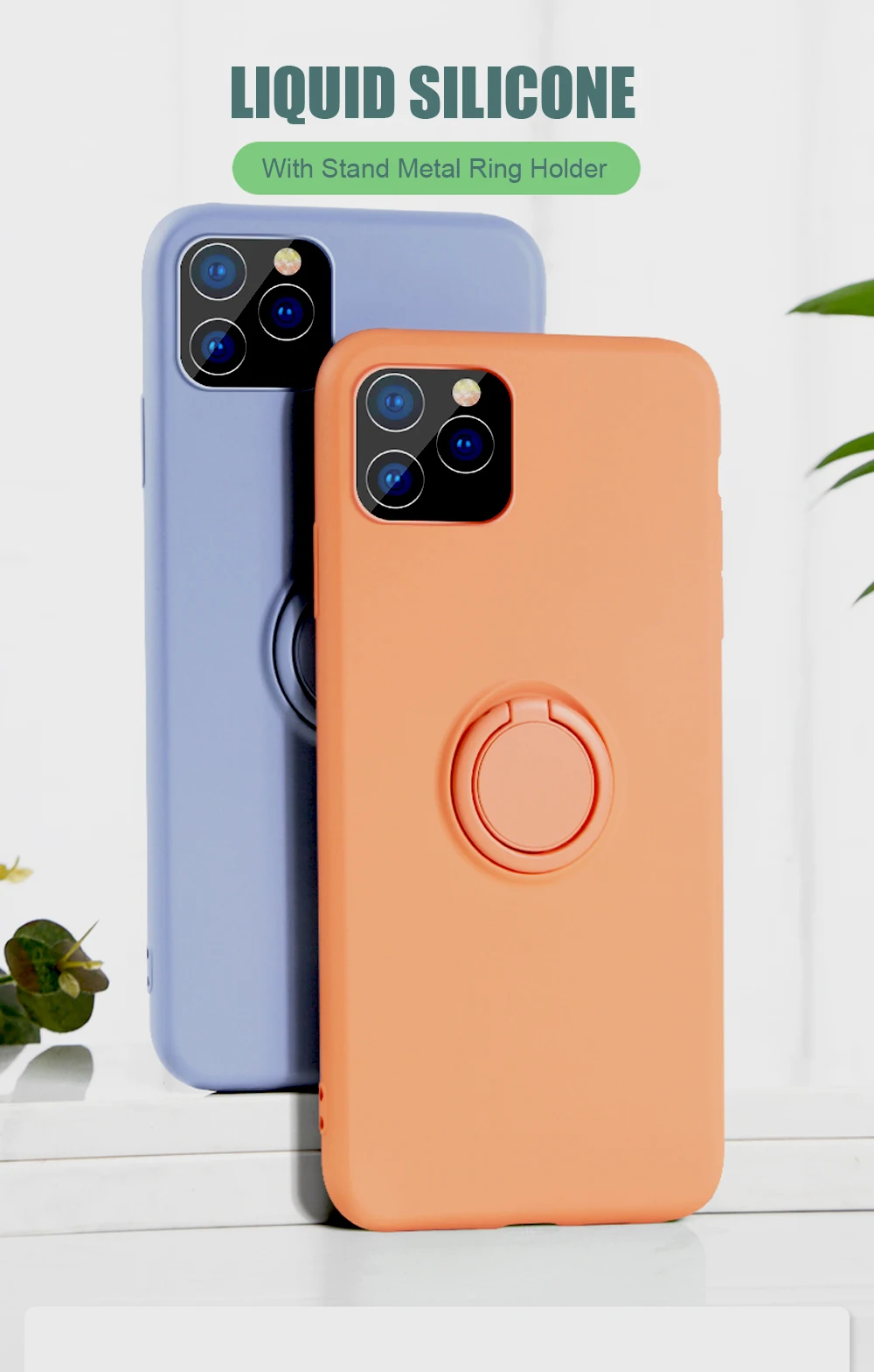 Чехол для телефона для iPhone X, XR, XS, 11, 12, 13, 6S, 6, 7, 8, SE 2020 Plus, Mini Pro Max, роскошный чехол с кольцом-подставкой из жидкого силикона