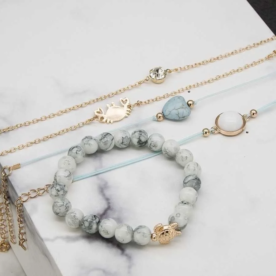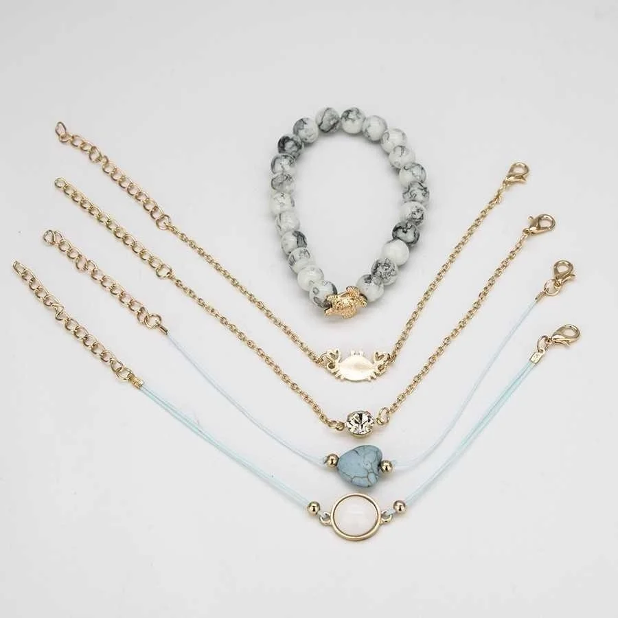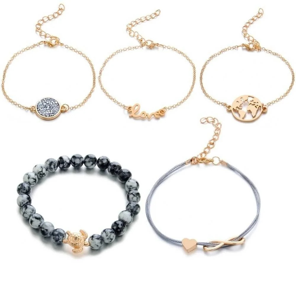 5 шт.компл. женский браслет с подвесками в виде черепахи, сердца, б...
