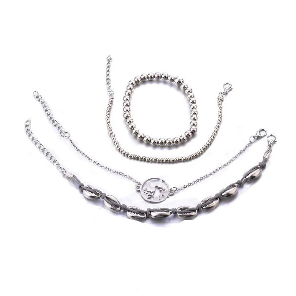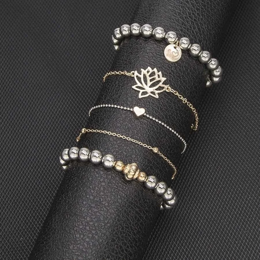 4 шт.компл. набор женских браслетов из цепочек с бусинами в богемно...
