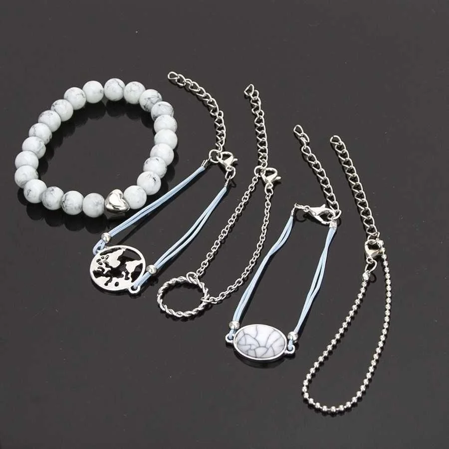 5 шт.компл. Boho браслет с картой мира веревочные Подвески из бисер...