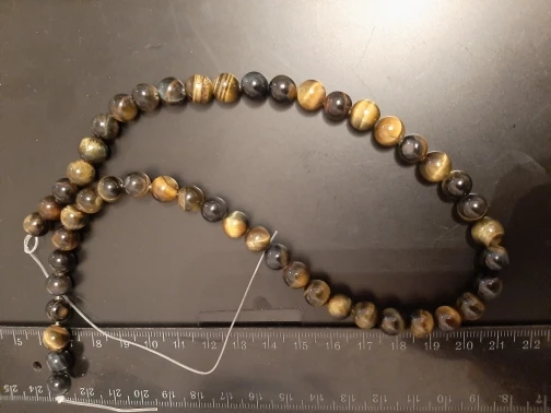 Бусины жетого и синего тигрового глаза соответствуют описанию. Желтыми я довольна. А вот синие окались темнее, чем ожидалось. Синева едва видна, на фото синий цвет виден лучше, чем в реальности. Но в общем бусины хорошие. В следующий раз буду брать только жёлтый цвет. Цена 1.58 доллара.