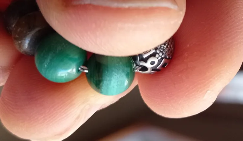 Более зеленоватый, чем ожидалось, у некоторых бусин были странные пластыри, как у прессформы.