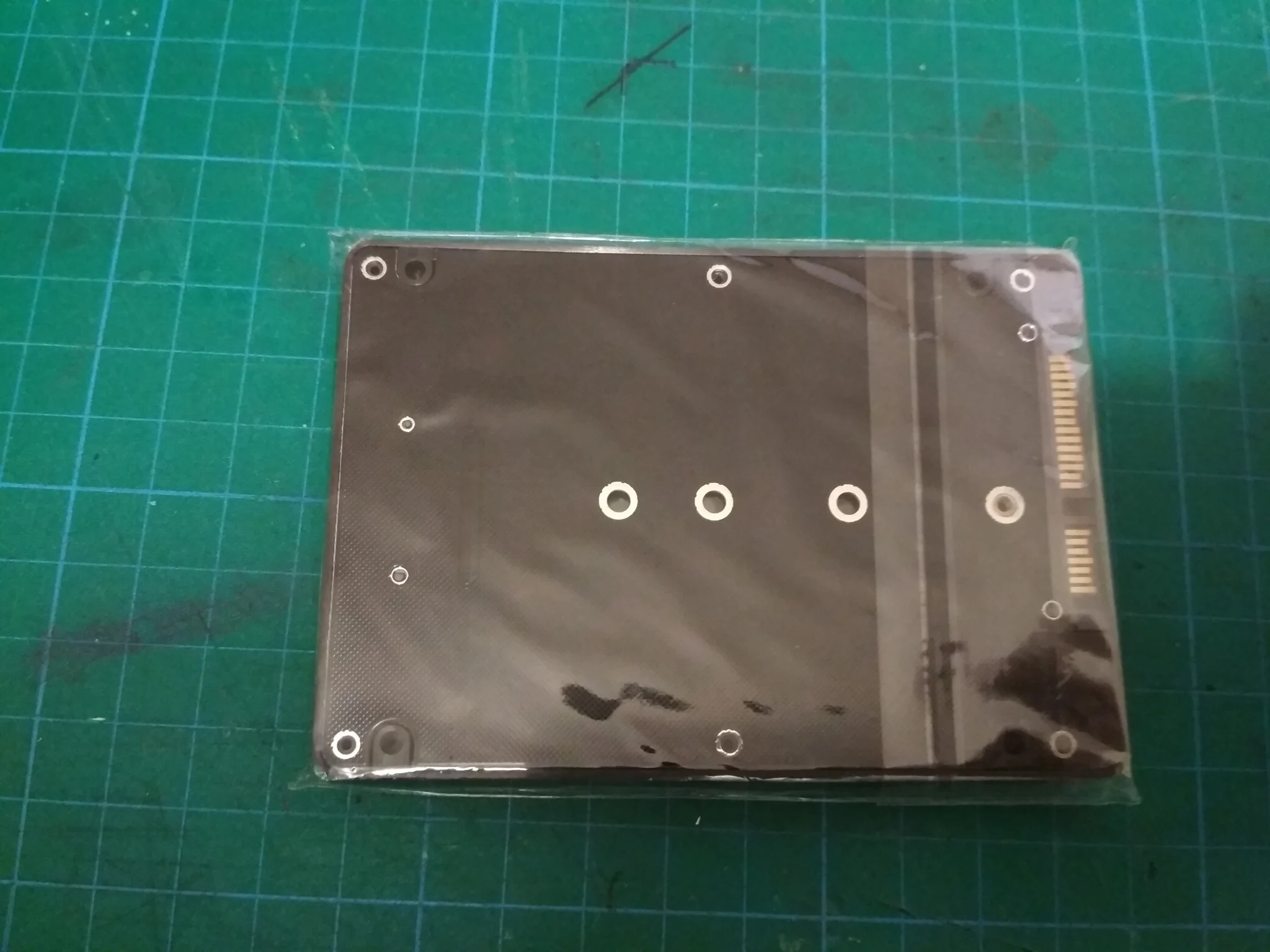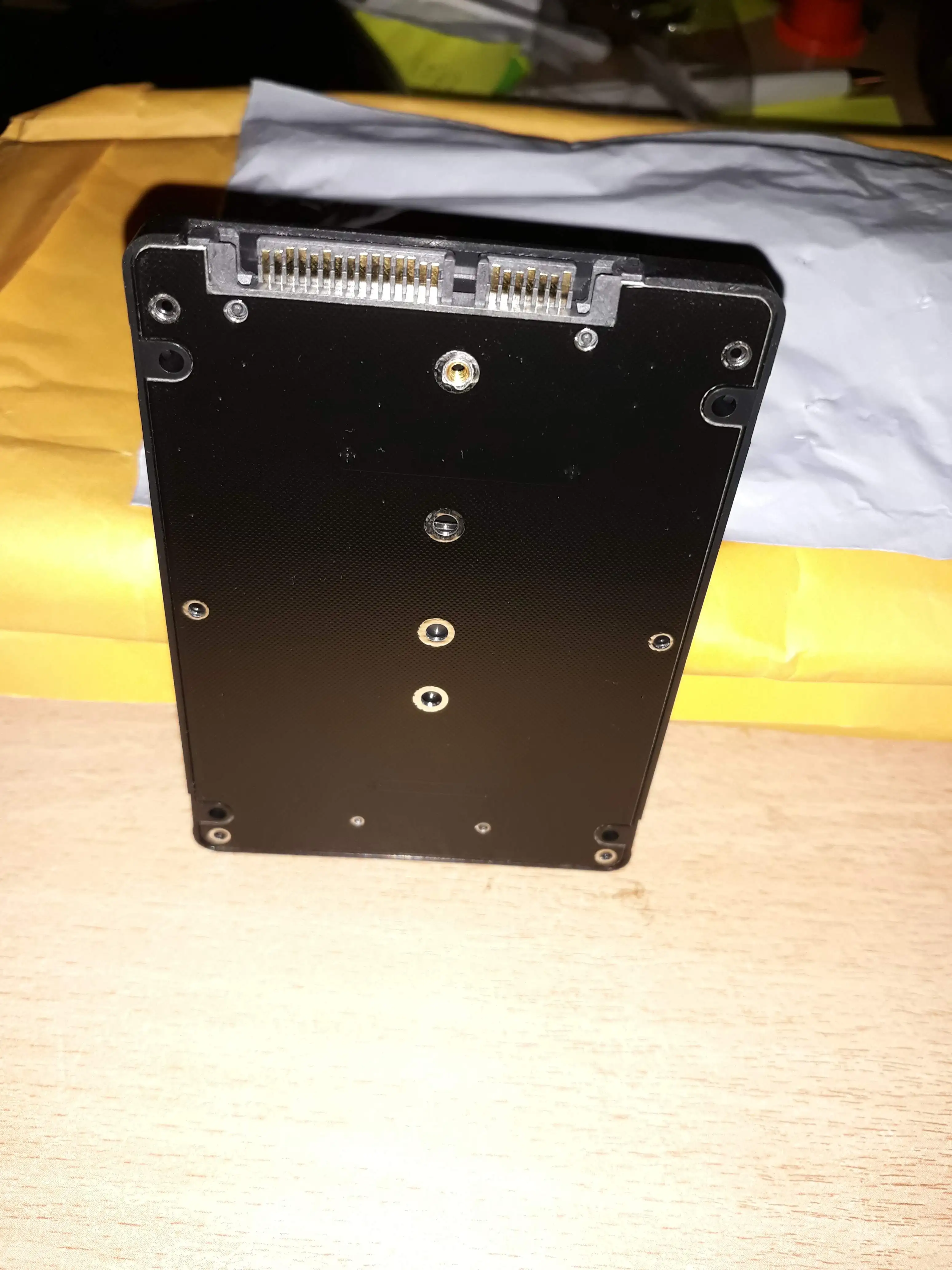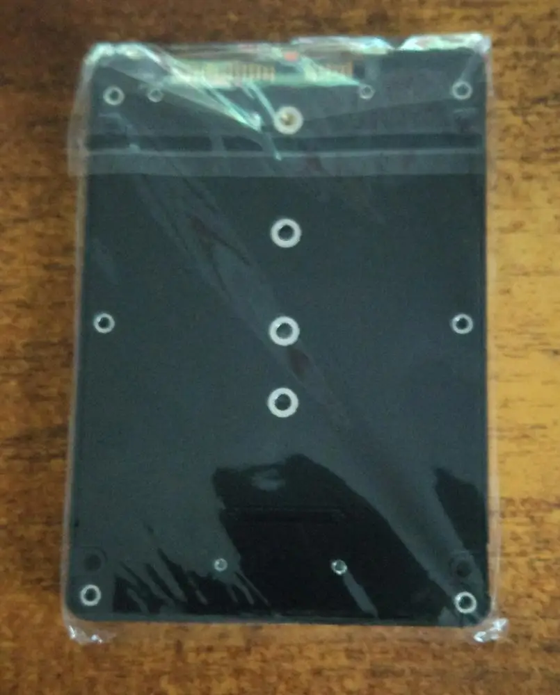 M.2 NGFF (SATA) SSD до 2,5 дюйма SATA адаптер по упаковке обычный полиэтиленовый пакет и транспортировочный пакет с адресом и всё. Покупал для CORSAIR FORCE Series MP510 SSD 480GB пока не проверил товар по отслеживанию то пропадал то появлялся долго шёл. Брал за 257,47 руб. Доставка 12 ноября 2020 г. заказ получил 11 Января 2020 г. поставщикам и изготовителям качественно спасибо.