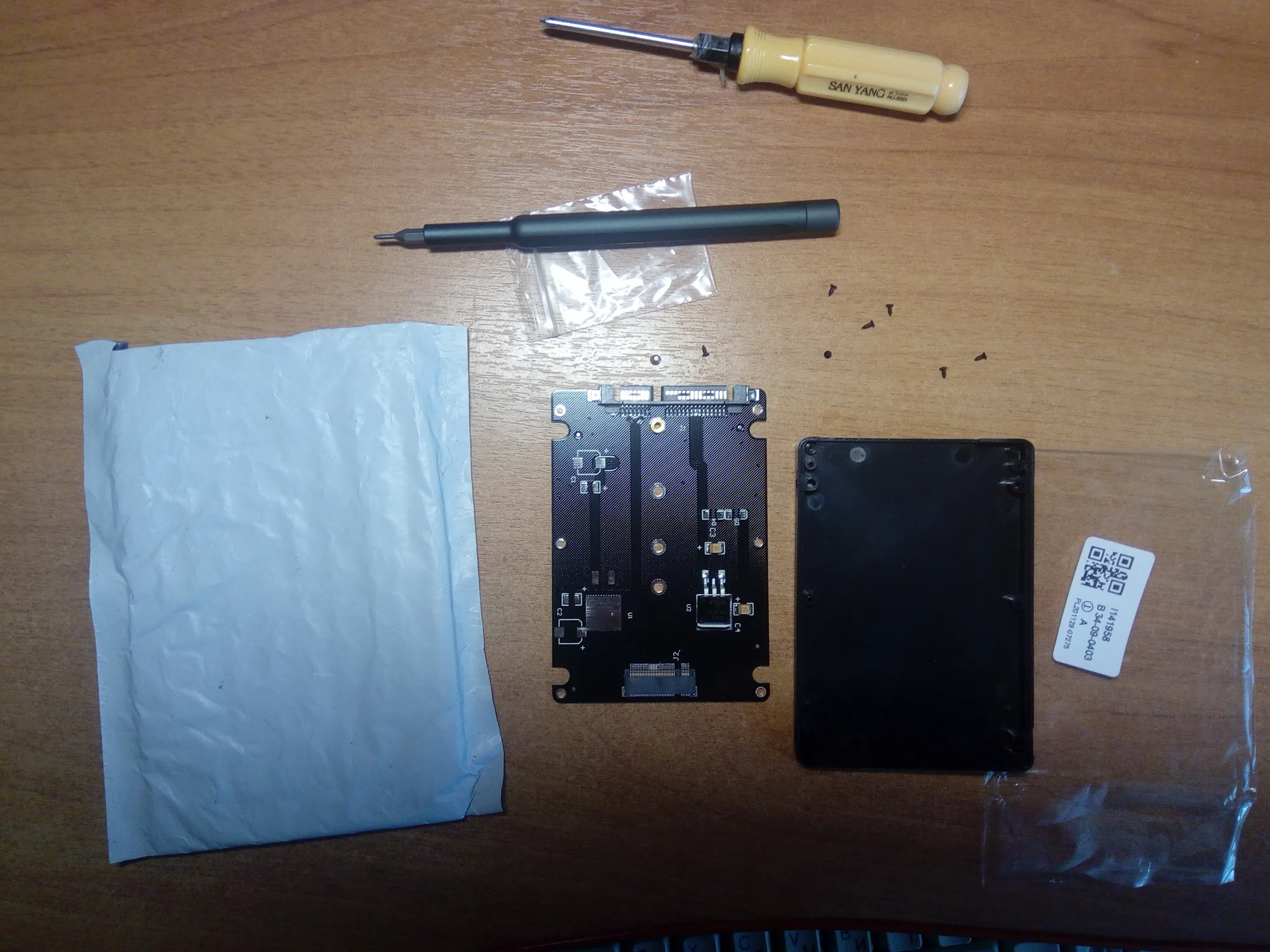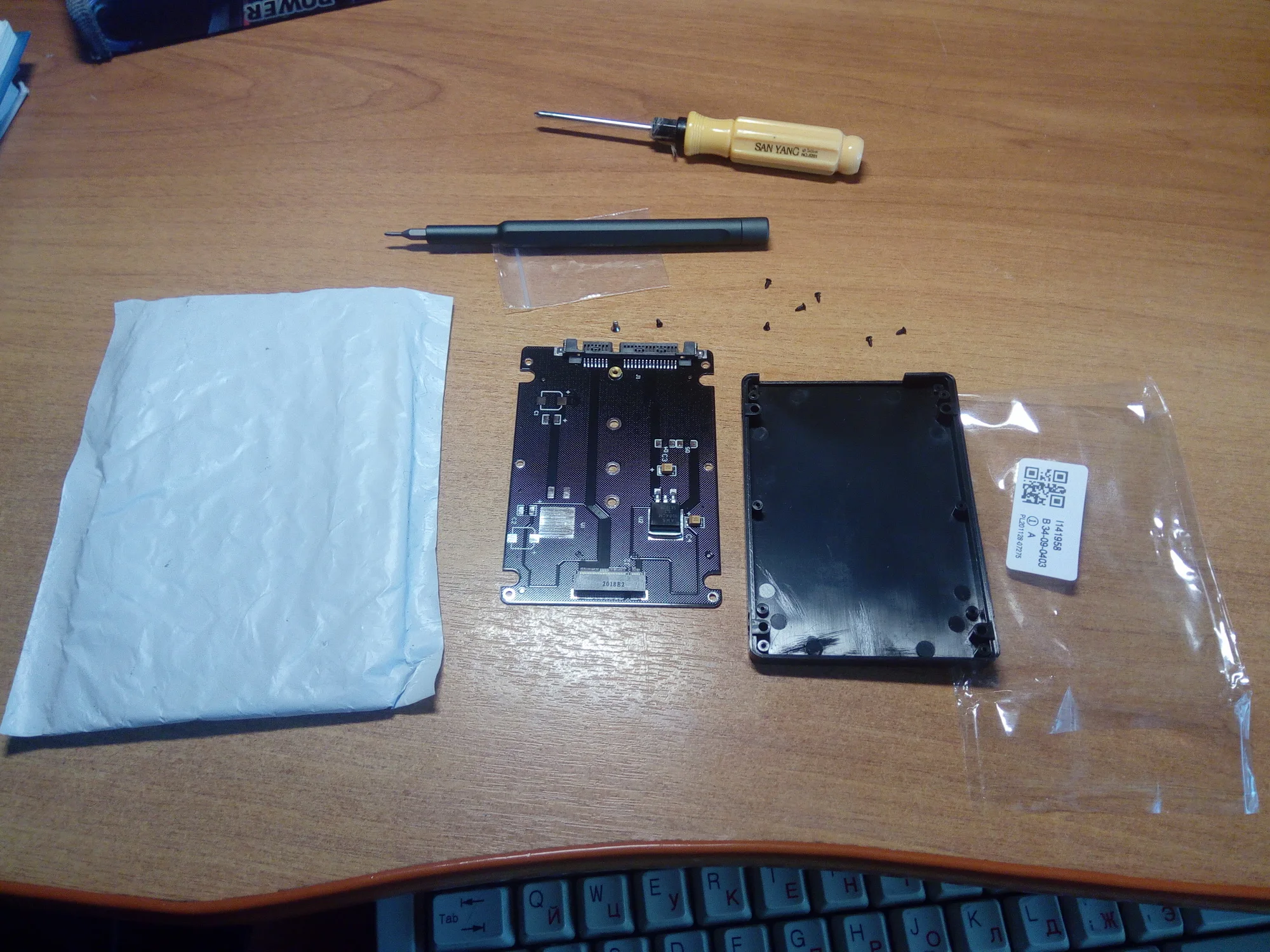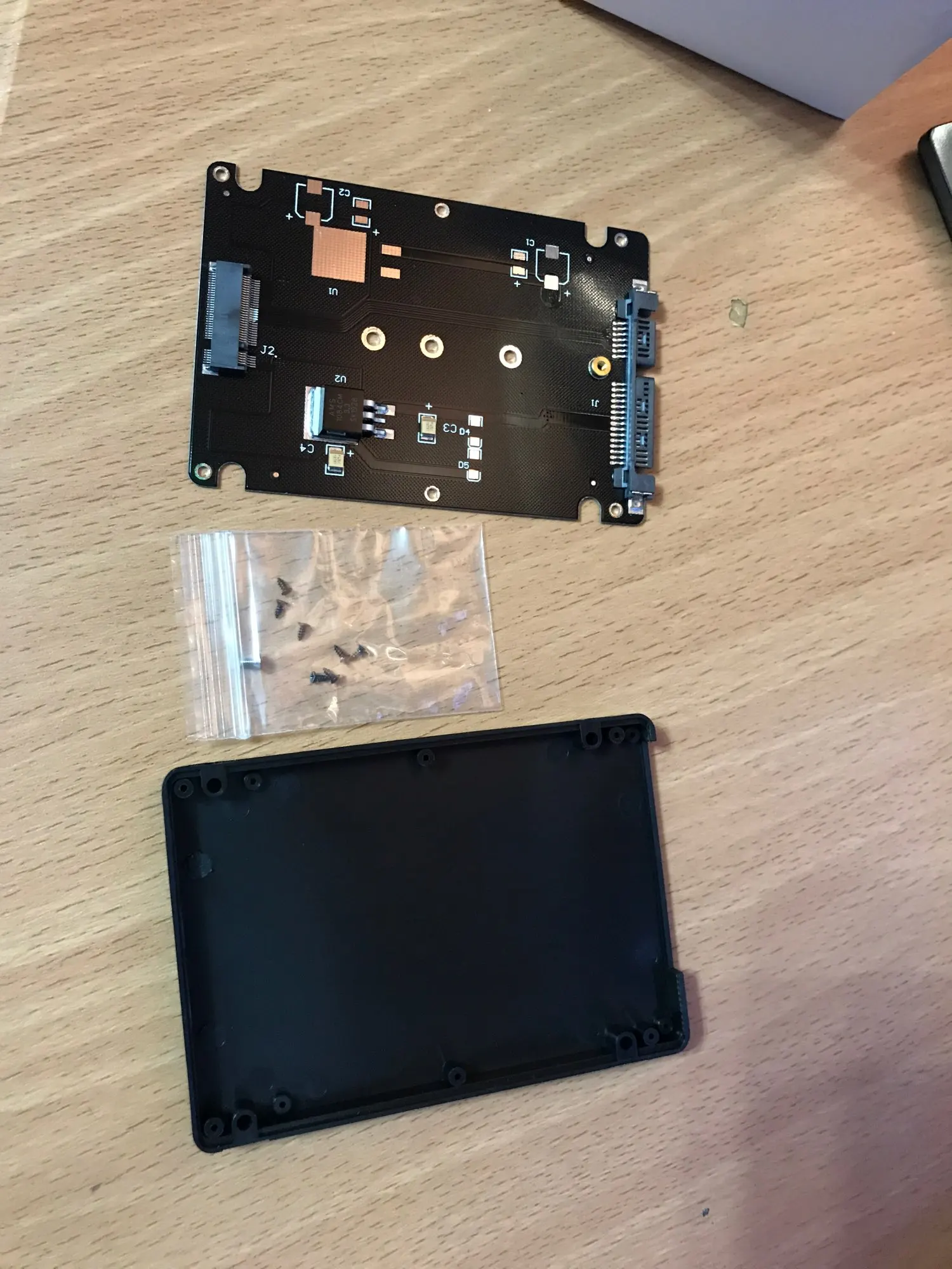 M.2 NGFF (SATA) SSD до 2,5 дюйма SATA адаптер по упаковке обычный полиэтиленовый пакет и транспортировочный пакет с адресом и всё. Покупал для CORSAIR FORCE Series MP510 SSD 480GB пока не проверил товар по отслеживанию то пропадал то появлялся долго шёл. Брал за 257,47 руб. Доставка 12 ноября 2020 г. заказ получил 11 Января 2020 г. поставщикам и изготовителям качественно спасибо.