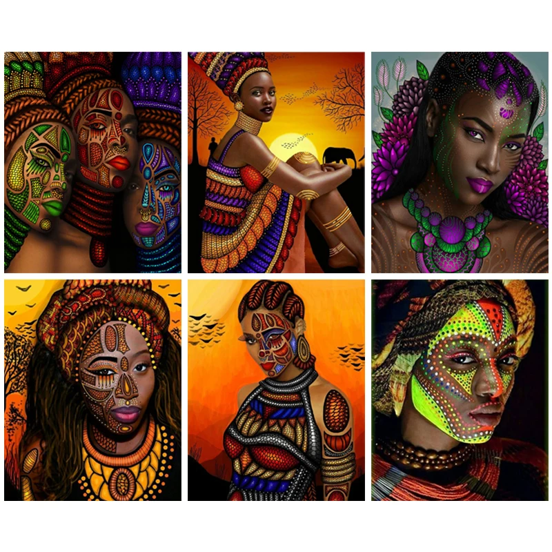 5D DIY камни в форме ромбаНабор для рисования с круглыми камнями и полотном с кристаллами в африканском стиле на высоком каблуке Алмазная вышивка картины-мозаики из алмазных элементов Декор для дома подарок