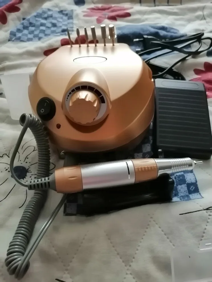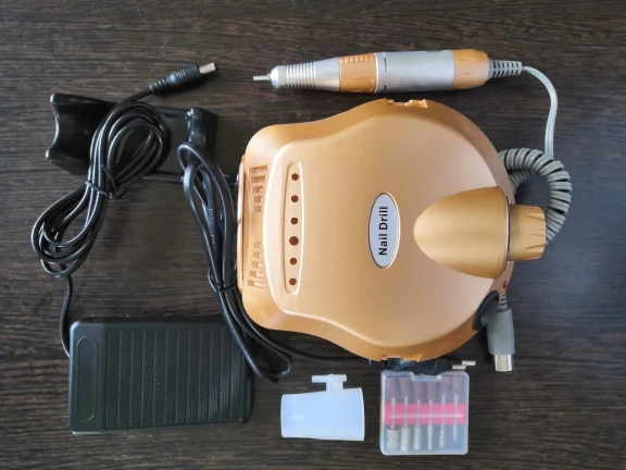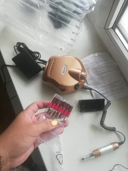Доставили за 5 дней, работает педаль при переключении режимов, реверс и регулятор мощности тоже работают, если эти обороты можно назвать мощностью. На мой взгляд, это не более чем дорожной вариант, отремонтировать, например, ногти в отпуске - размеры прям игрушечные. На тесте шлифовке стопы абразивным цилиндром насадка буксует и останавливается мгновенно, так что непонятно зачем все эти примочки с педалью для педикюра, если этот аппаратик дай бог со снятием гель-лака на руках справится. Фрезы лысые - сразу в помойку. В любом случае 5 звёзд - что на картинке с описанием - то и получил за эти деньги, мне он нужен больше как просто шлифовщик пластиковых деталей для моделирования кораблей. Не надейтесь устроить nail-салон на дому с этим аппаратом, это не более чем маломощная дрель, а не рабочая лошадка для идеальных рук и стоп.
