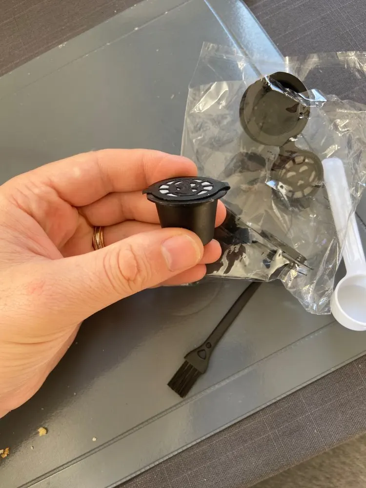 Работает прямо! Было обнаружено, что кофе был немного слабее, чем когда делаете ситечко, но все еще будет тестироваться с другой пудрой сильнее. Пришел 6 капсул, метр, чтобы положить точное количество и щетку, чтобы очистить избыточное время закрытия. И прибыл раньше :)
