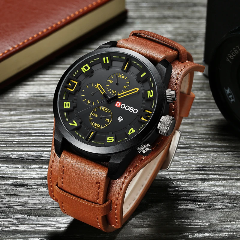 Мужские часы DOOBO, спортивные, деловые, кварцевые с кожаным ремешком и датой, 8225