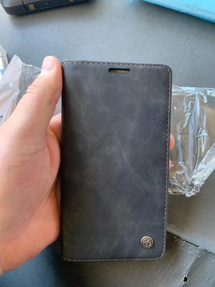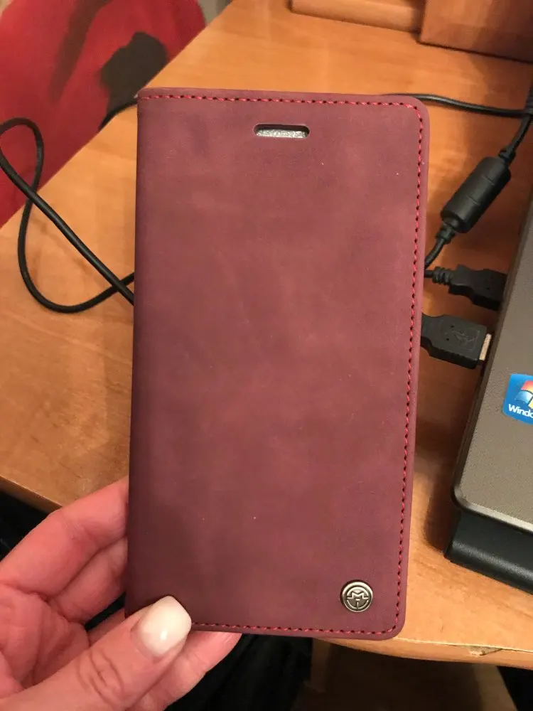 Был небольшой дефект возле отверстия для камеры, но в целом это несущественно. Красивый цвет, пахнет кожей, на айфон сел прекрасно