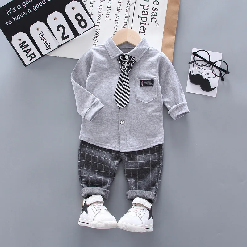 Новая весенняя модная одежда для маленьких мальчиков детская рубашка с галстуком, штаны 2 шт.компл., детская официальная одежда, хлопковый спортивный костюм для младенцев